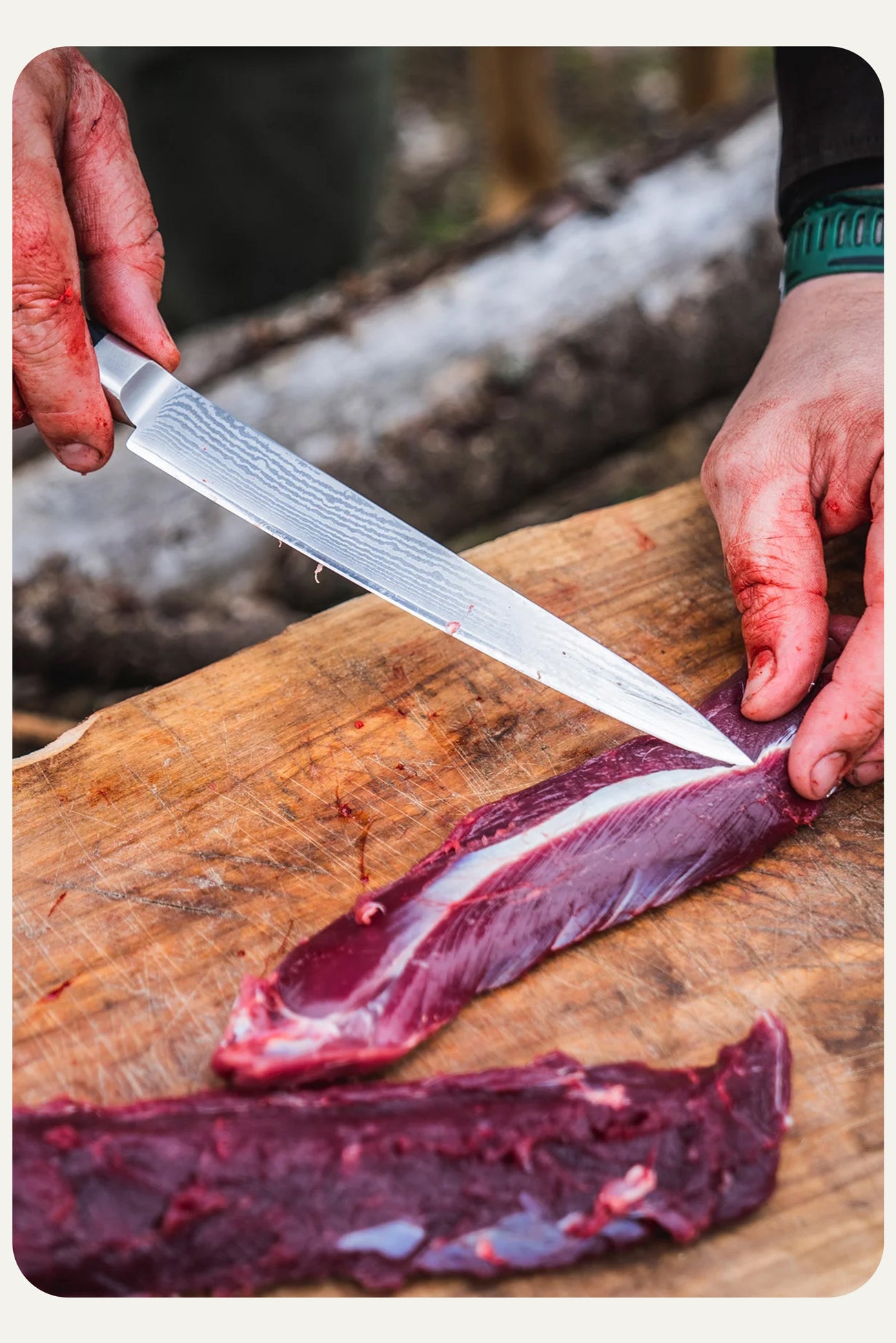 Mød Meat, slank, spids og kraftfuld. Med et overlegent og stabilt blad samt et ergonomisk, vandafvisende håndtag der er designet til nemt at fjerne sener og fedt fra kødet. En kraftfuld kniv, perfekt til de mange opgaver med kød og fjerkræ.