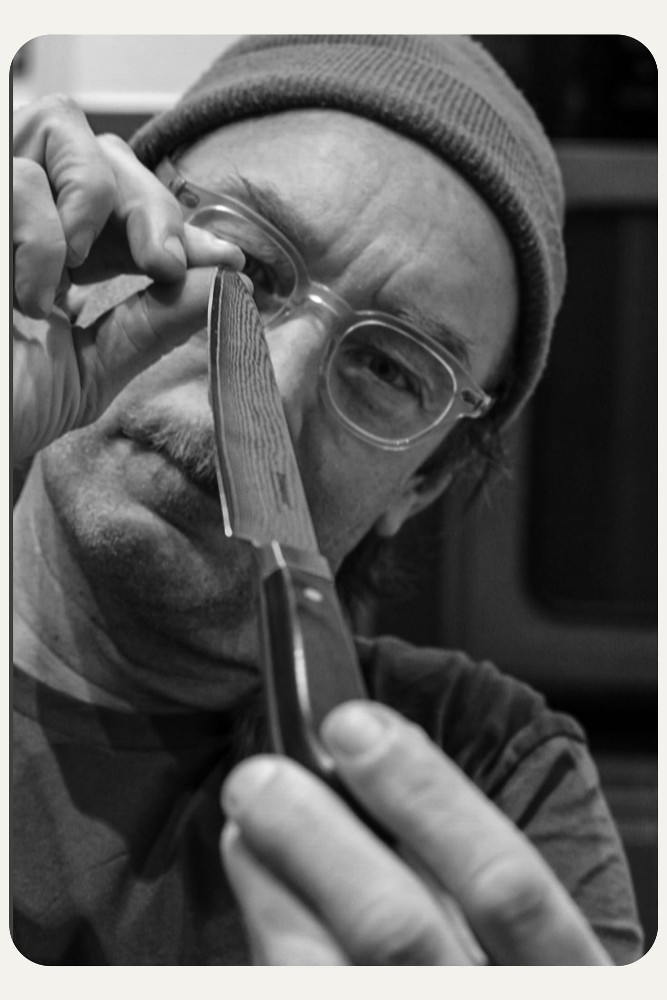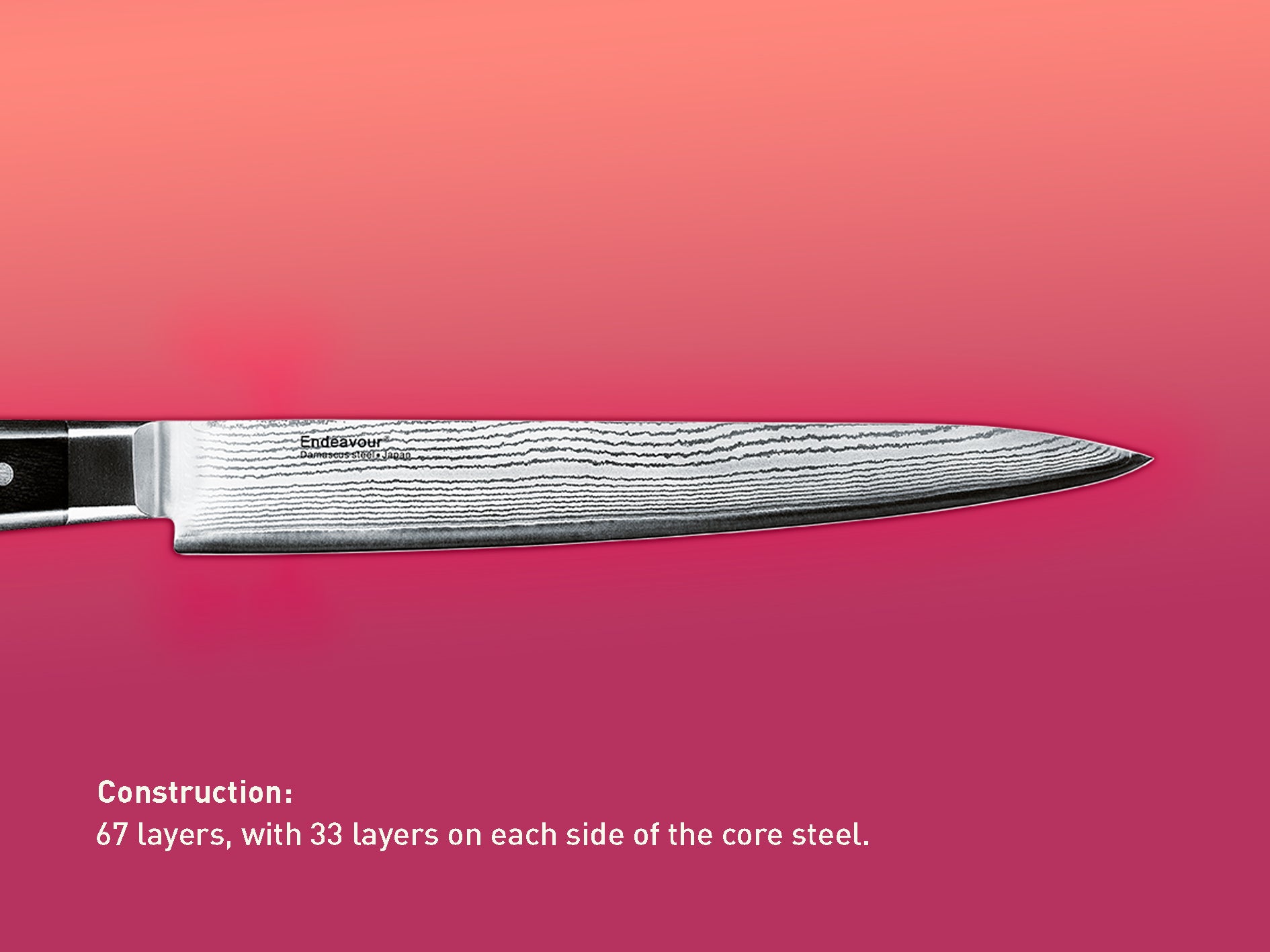 Kniven er smedet i 67 lag, med 33 lag på hver side af kernestålet.