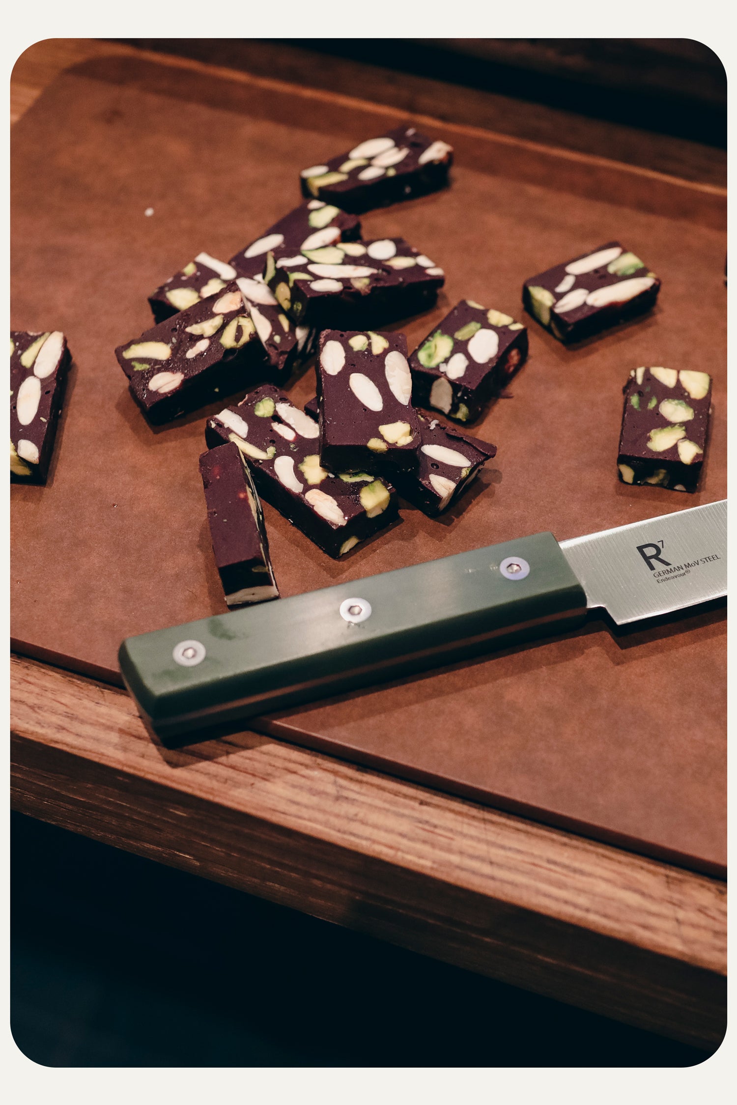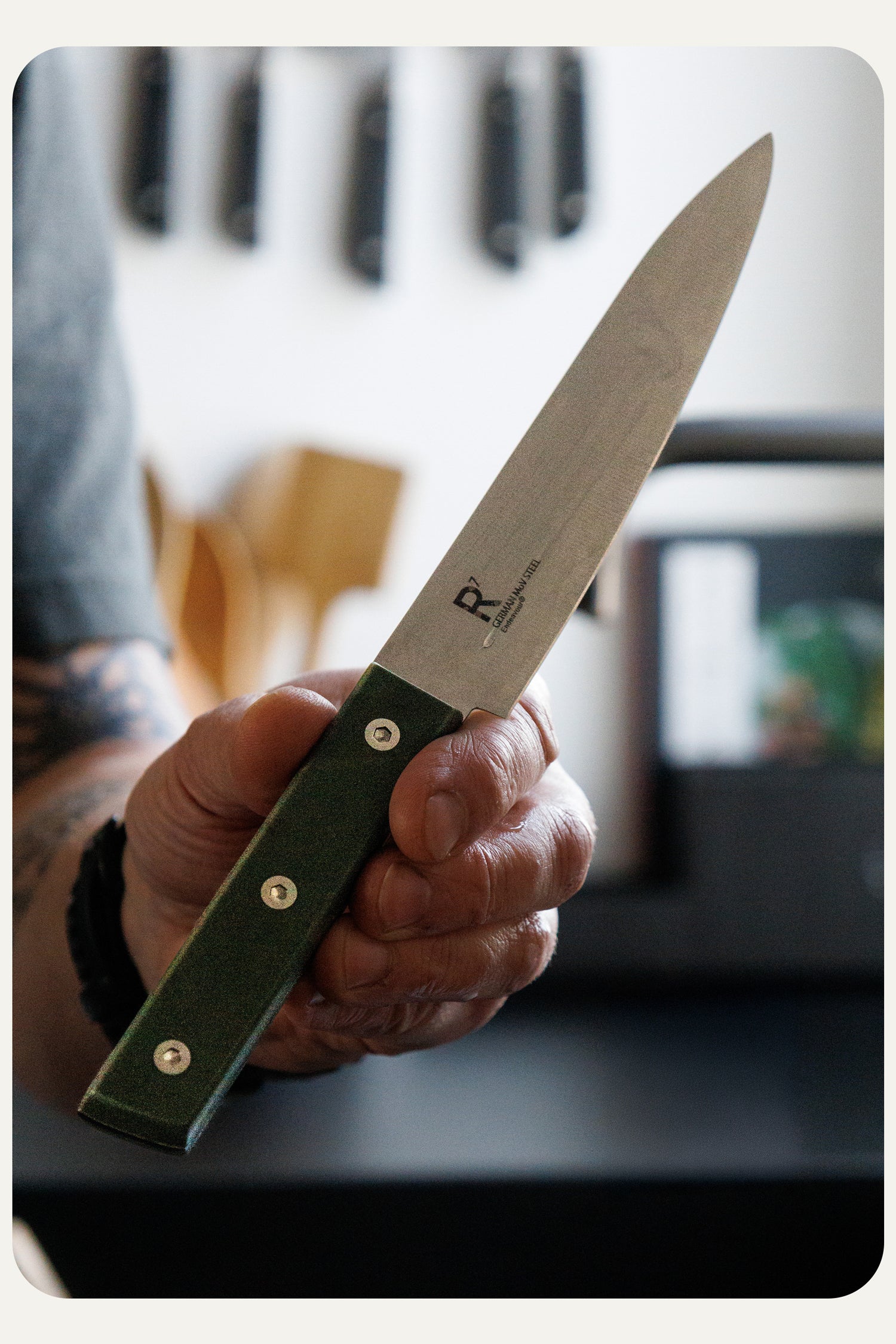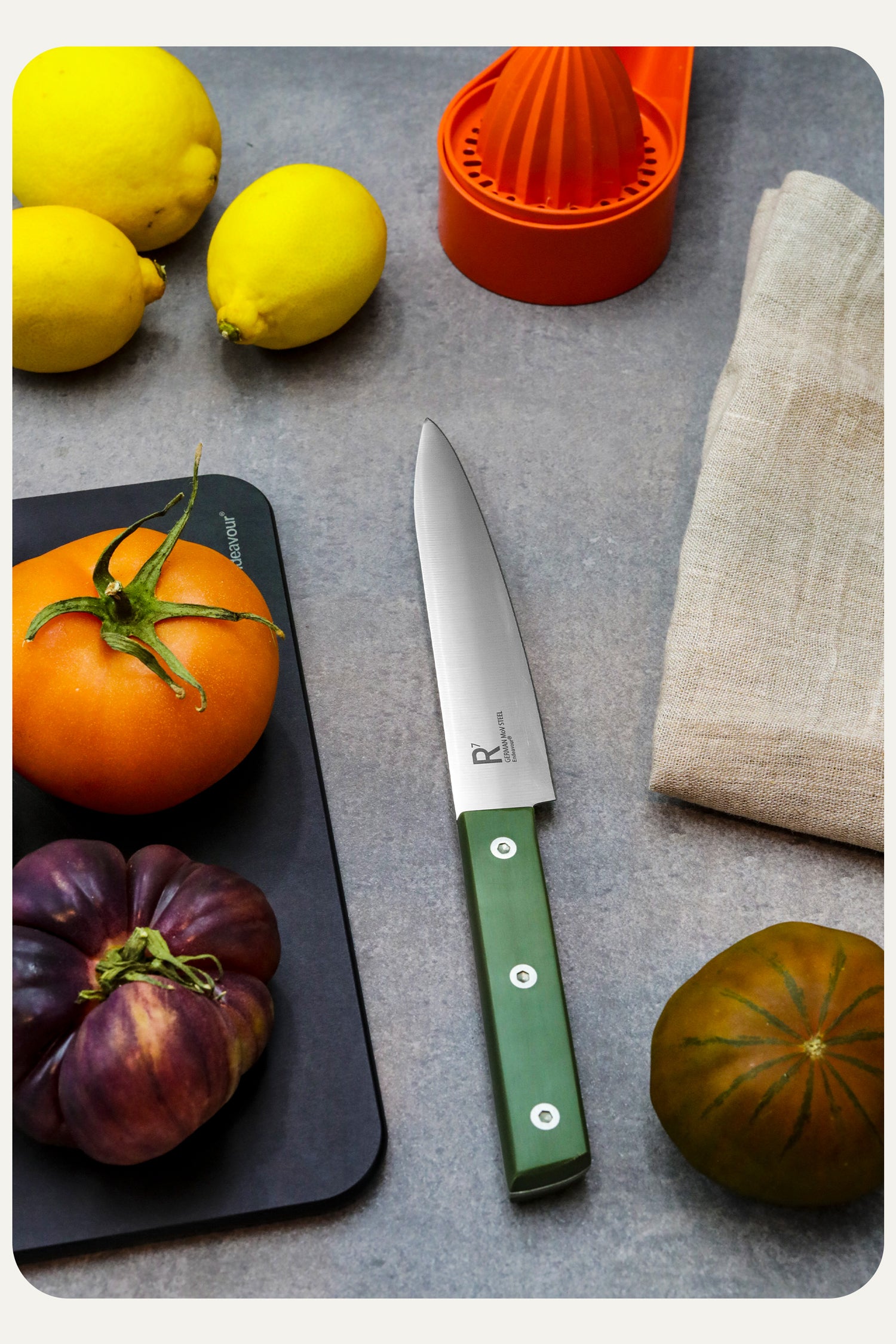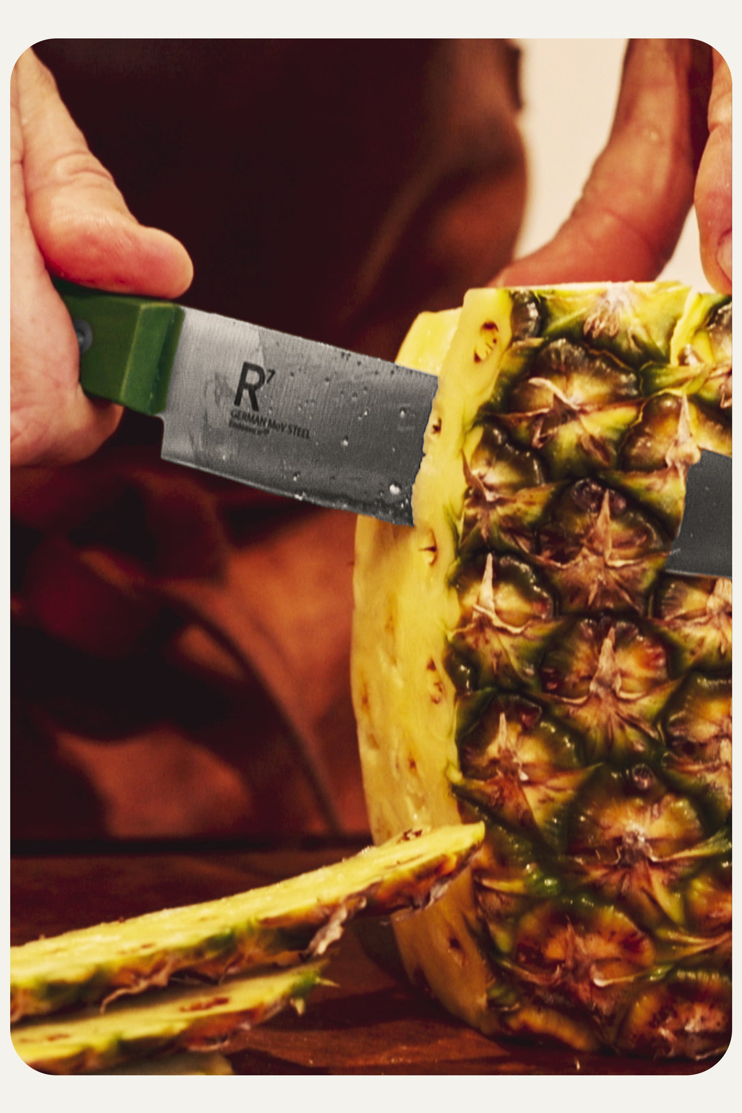 Resolution R7 er fremstillet i tysk rustfrit Mov stål. Den har en hårdhed på HRC 55-57 og er både slidstærk og funktionel. En universal kniv som på grund af sin størrelse kan benyttes til mange opgaver i køkkenet. Et sikkert førstevalg, uanset om du skal skære frugt eller grønt.