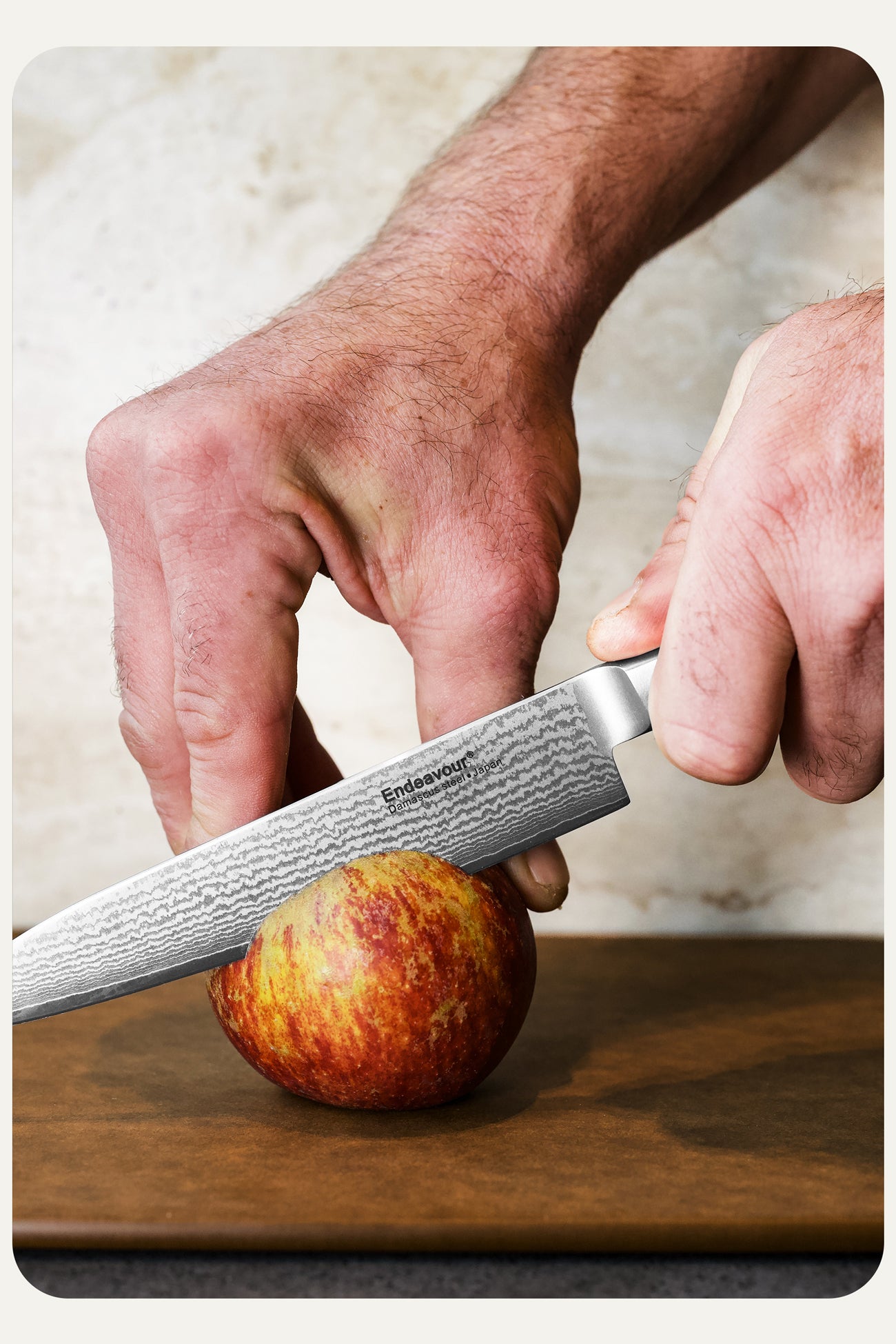 Mød Fruit, med sin praktiske størrelse er den skabt til at håndtere hverdagens mange udfordringer. Med et overlegent og stabilt blad samt et ergonomisk, vandafvisende håndtag er denne universalkniv specielt designet til at klare alle opgaver i køkkenet.