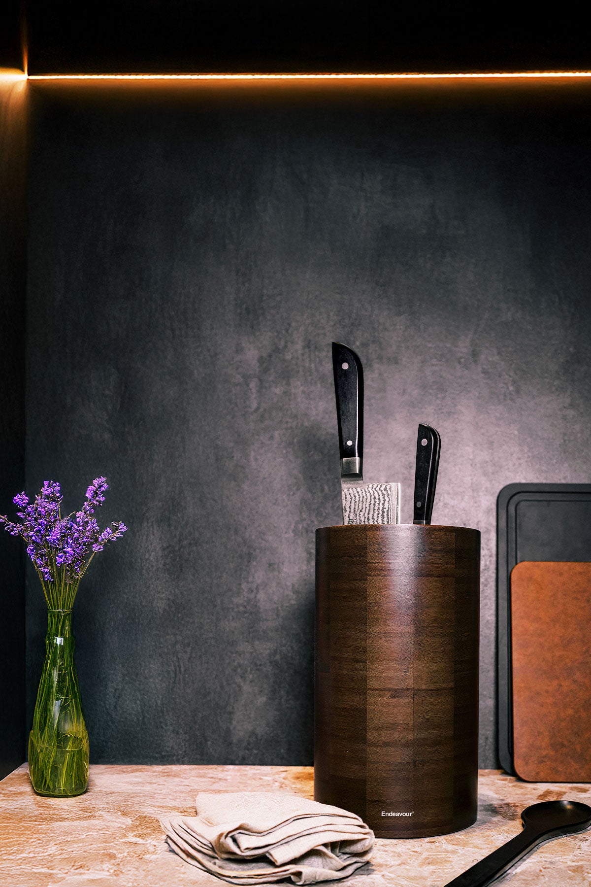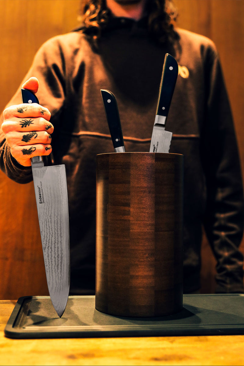 Endeavour's knife holder stands out for its unparalleled uniqueness, often imitated but never replicated. Designed to provide durable protection for knives while optimizing space, this holder has stood the test of time for nearly two decades. It has evolved into a contemporary classic, gracing the kitchens of professionals and everyday households worldwide.