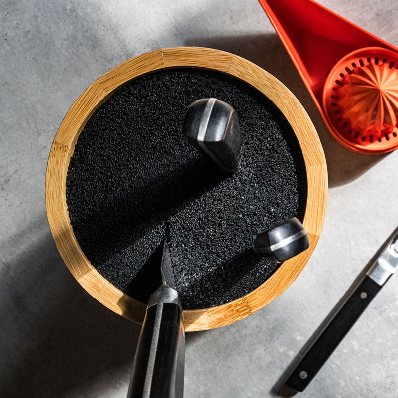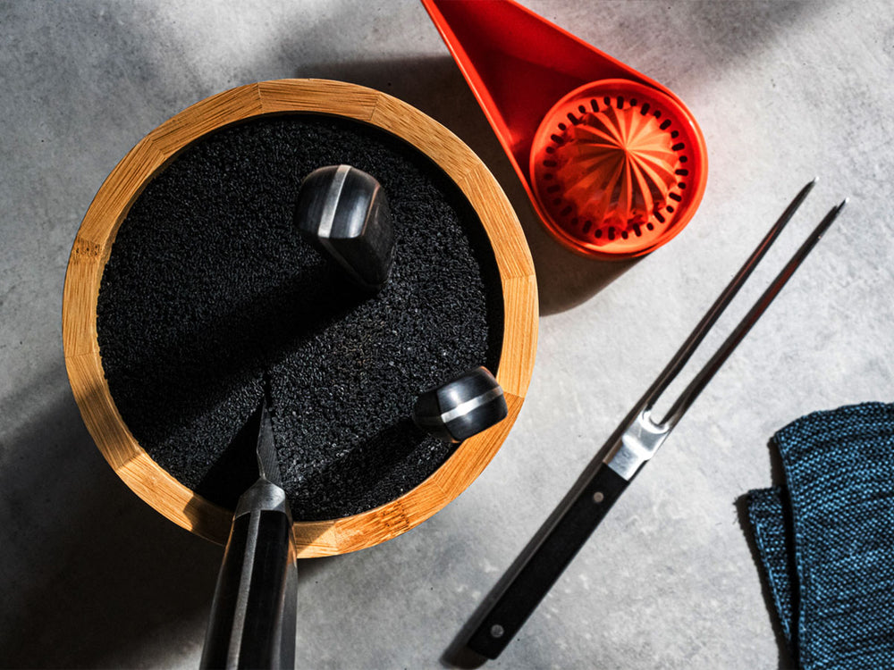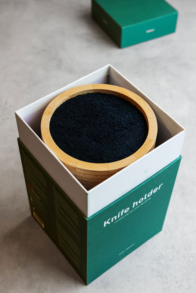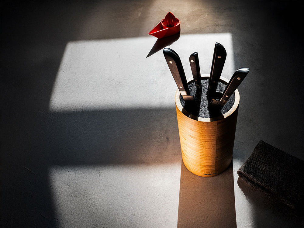 The concept of an insert made up of thin sticks allowed us to place the knives in the holder in a playful way, giving the user freedom to experiment with the arrangement. The insert inside the knife holder also allow for a smooth and easy removal of the knives without unnecessary resistance from strong magnets – a kind of freedom.
