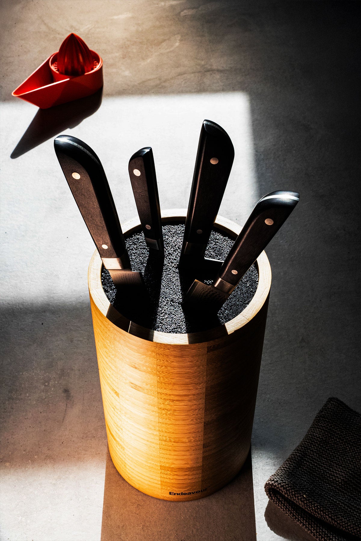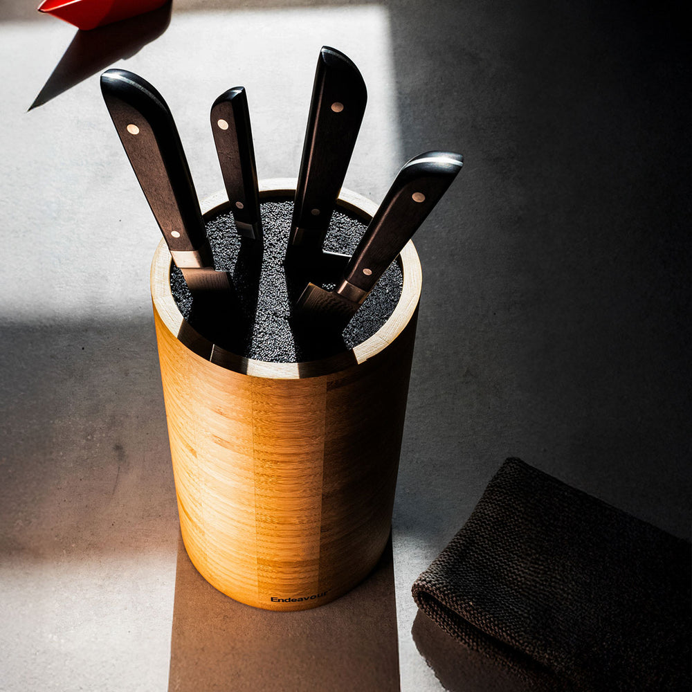 Constructed from 100% bamboo, the Endeavour Knife holder is extraordinary flexible, a plus for every creative chef. The simple design lets you easily store any combination of knives.