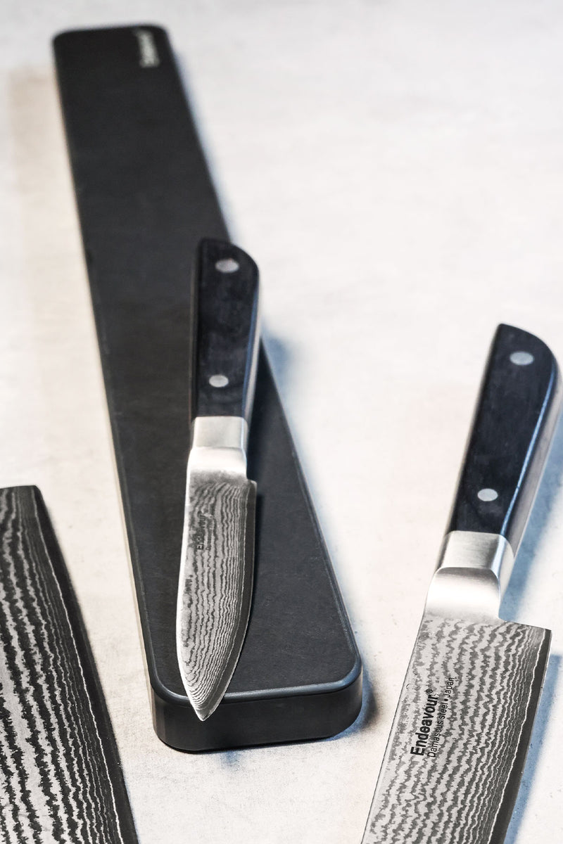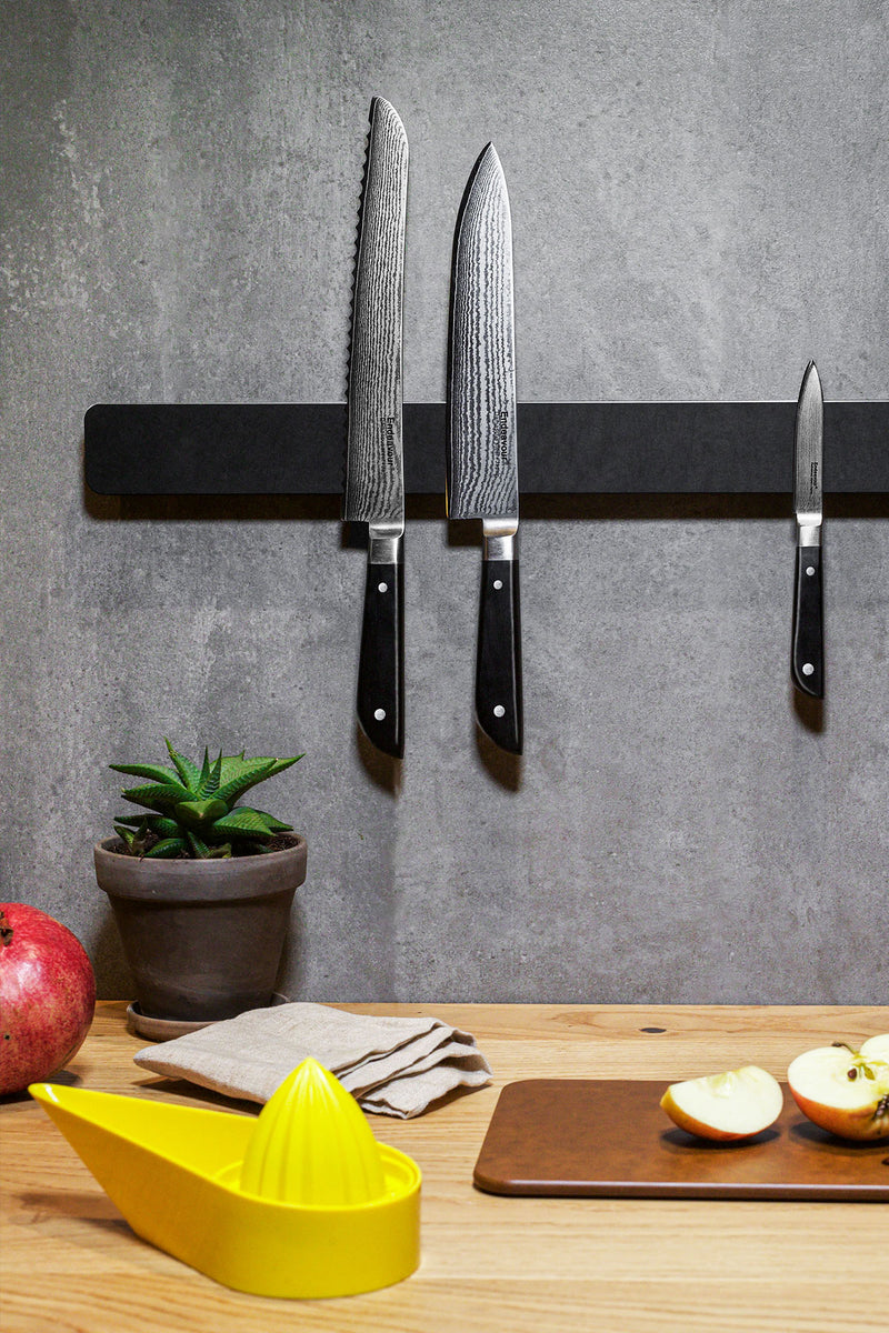 The knife magnet is made of FSC®-certified organic fiber - sustainable compressed fibers. With hidden powerful magnets that ensure a strong hold for your knives. Stylish design with a functional shape.