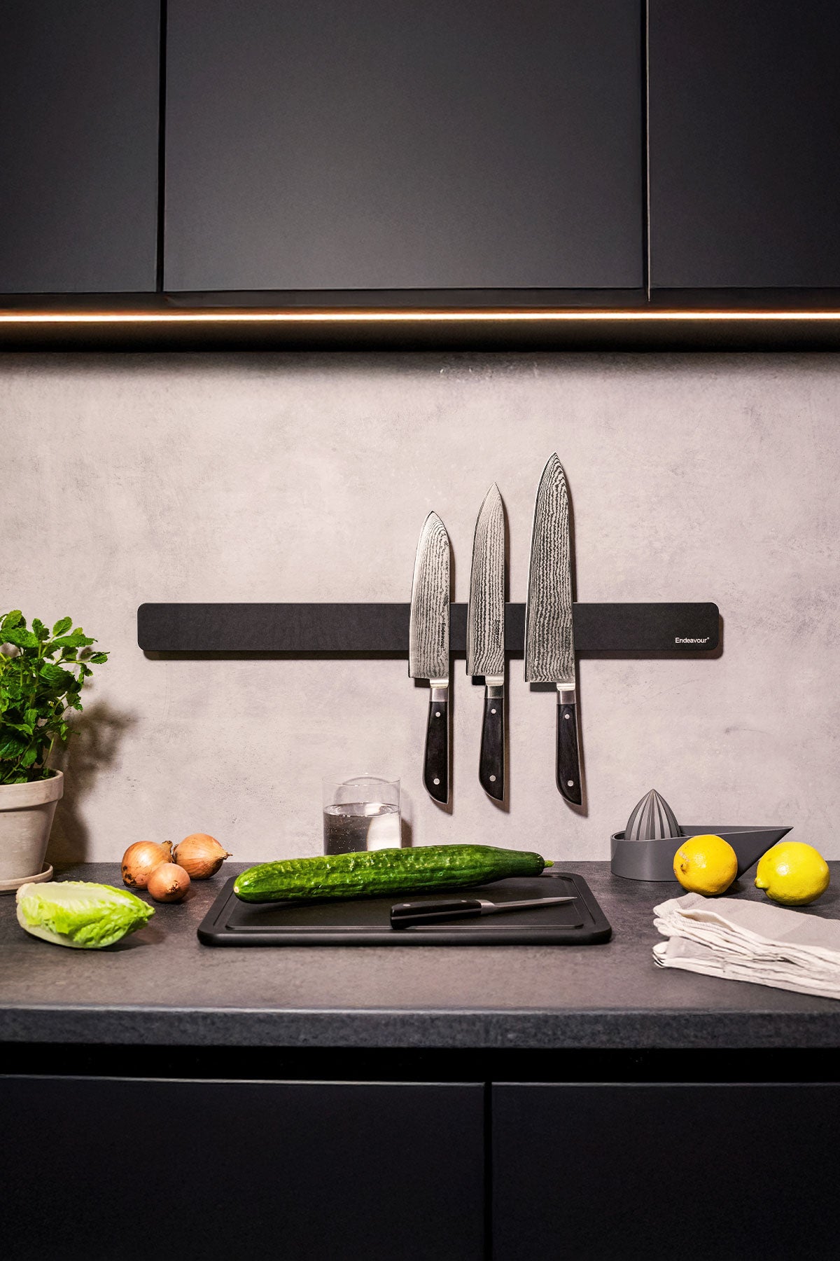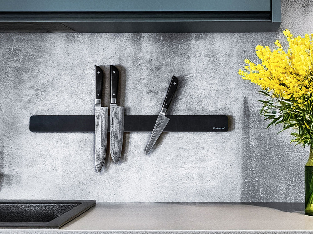 Safety: By keeping your knives securely stored on the magnet, you can prevent accidents caused by loose knives in drawers or countertops.
