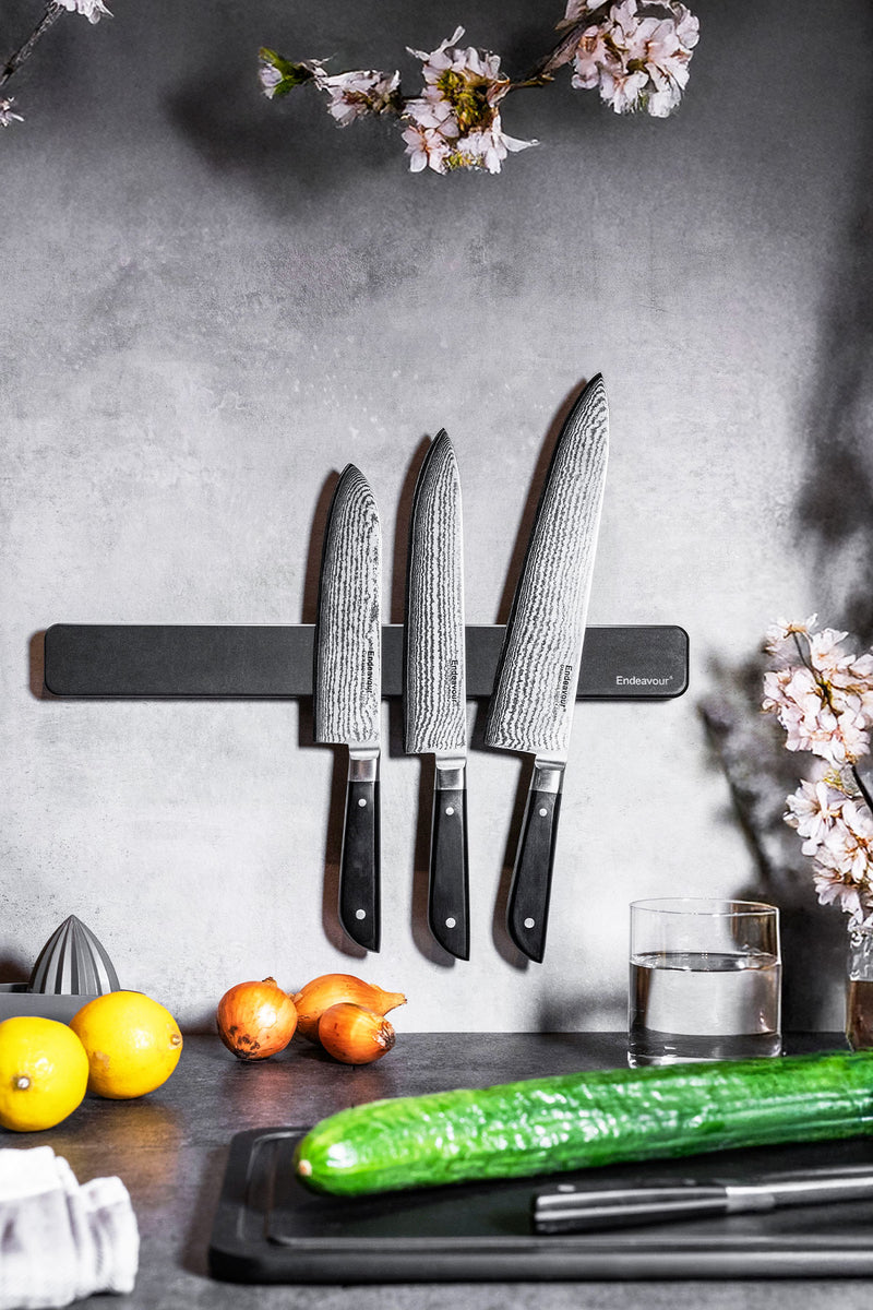 Safety: By keeping your knives securely stored on the magnet, you can prevent accidents caused by loose knives in drawers or countertops.