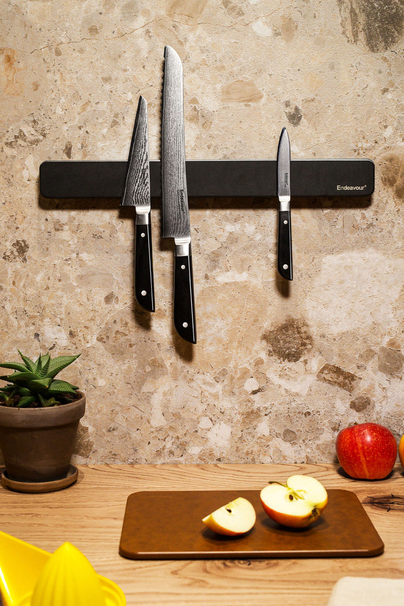 The knife magnet is made of FSC®-certified organic fiber - sustainable compressed fibers. With hidden powerful magnets that ensure a strong hold for your knives. Stylish design with a functional shape.