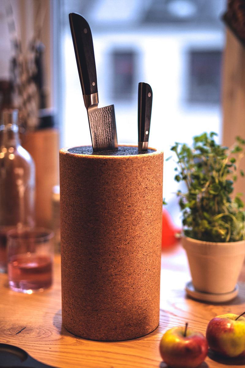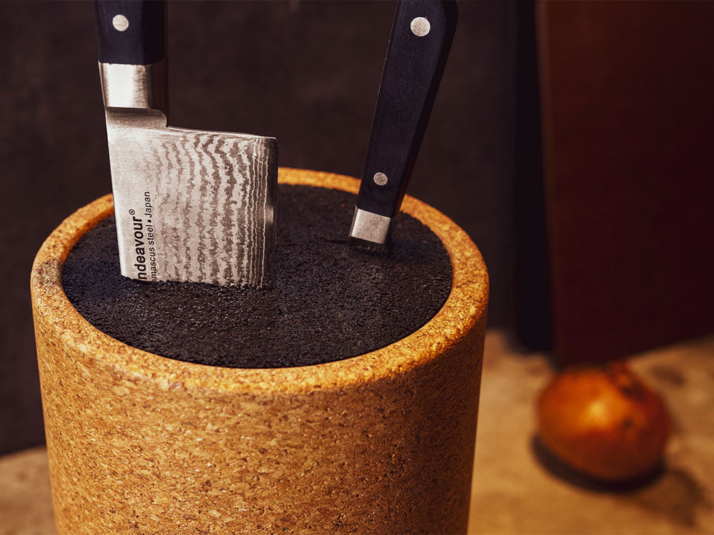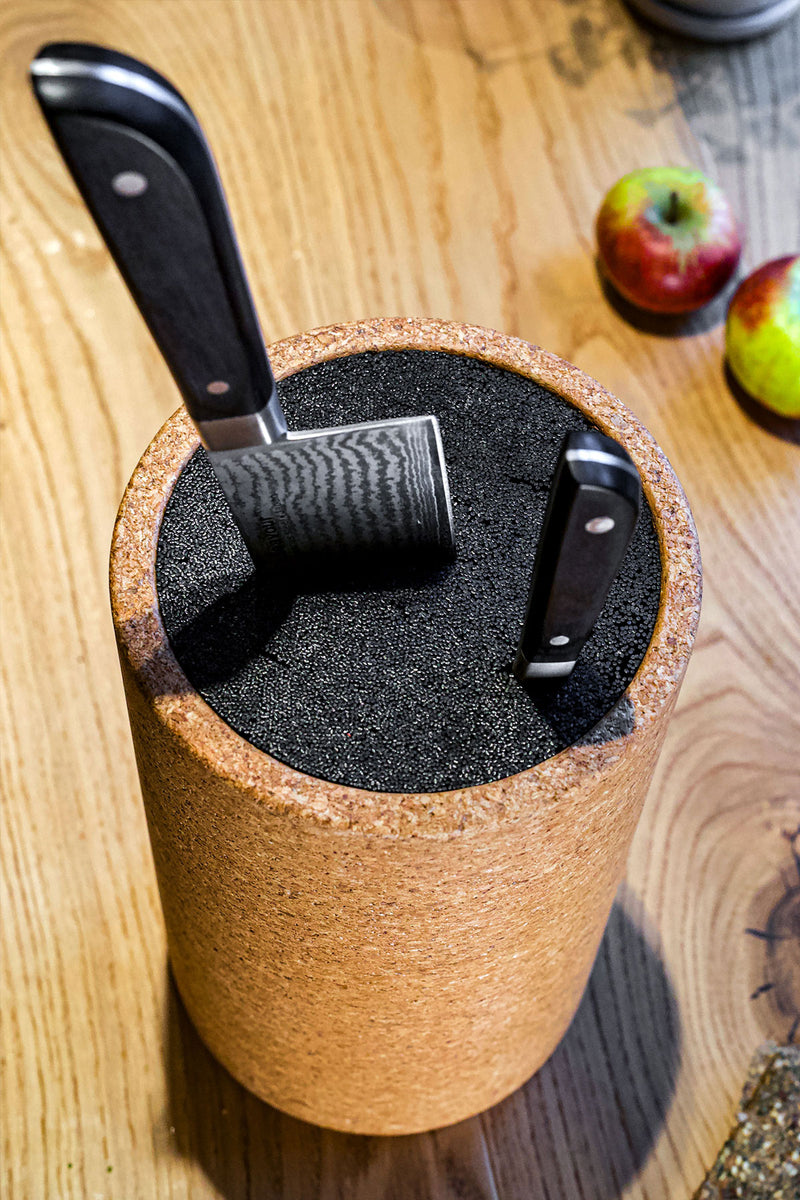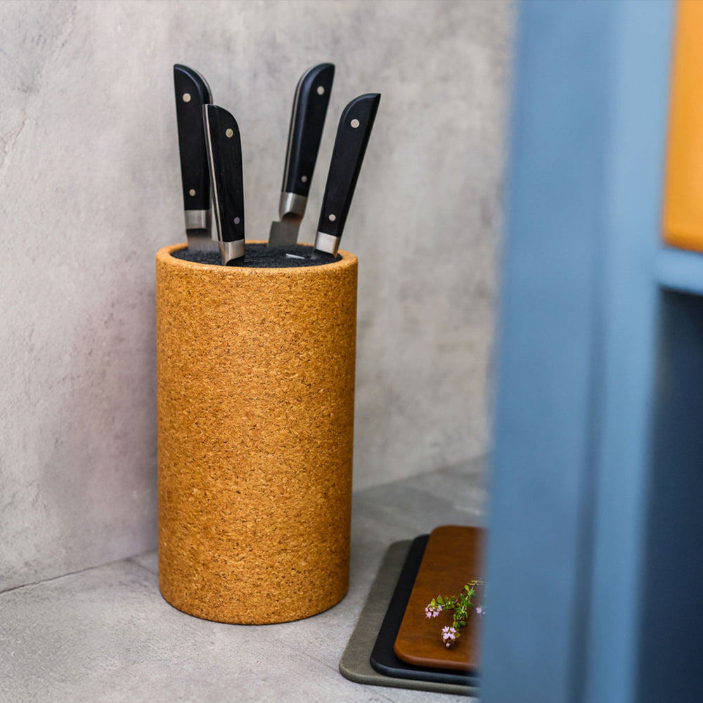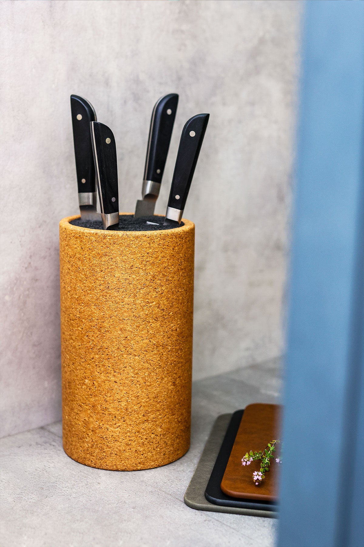 Constructed from 100% cork, the Endeavour Knife holder is extraordinary flexible, a plus for every creative chef. The simple design lets you easily store any combination of knives.