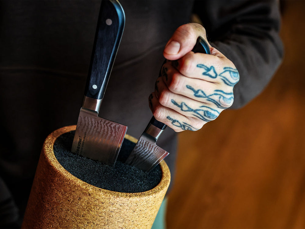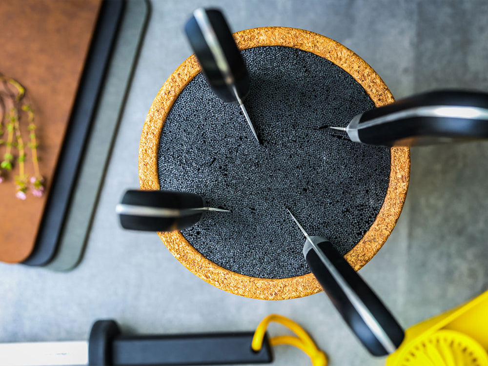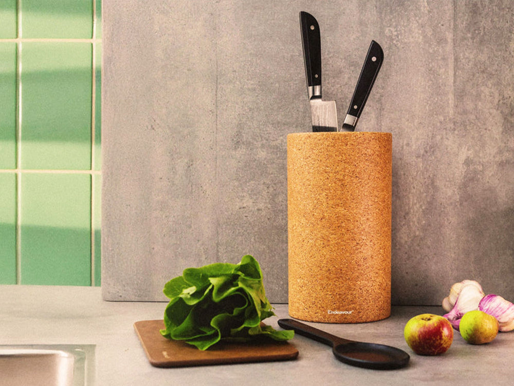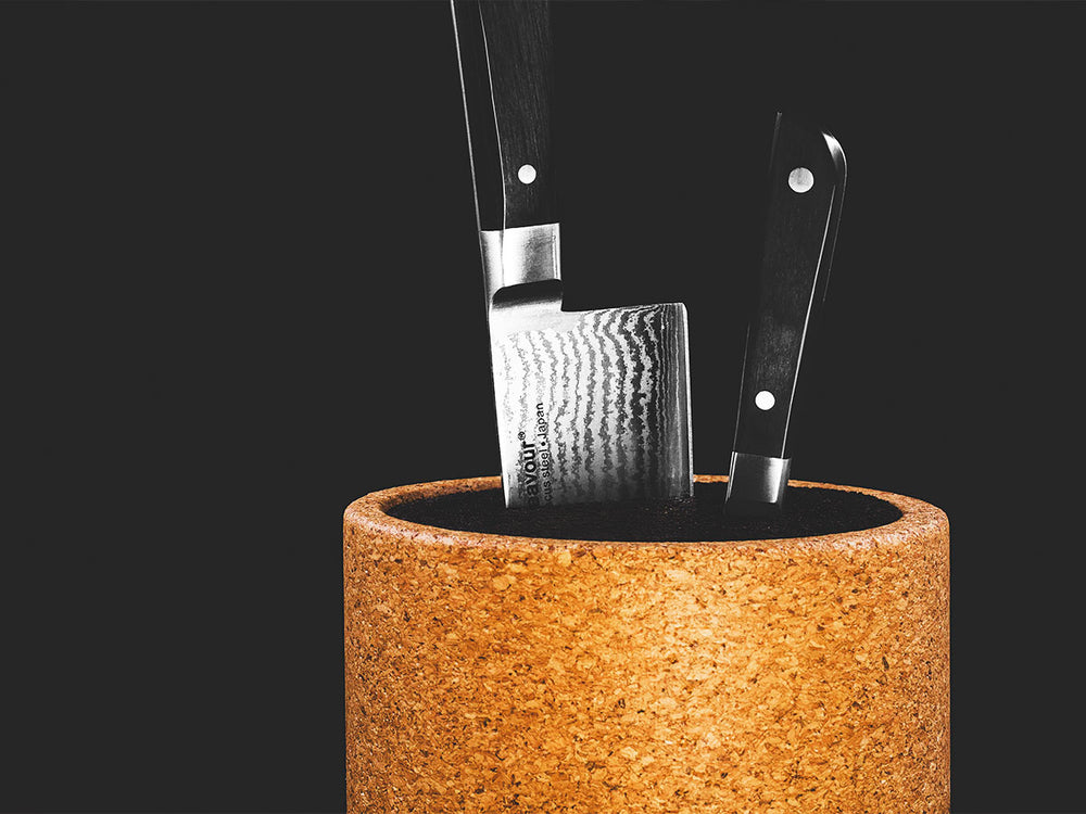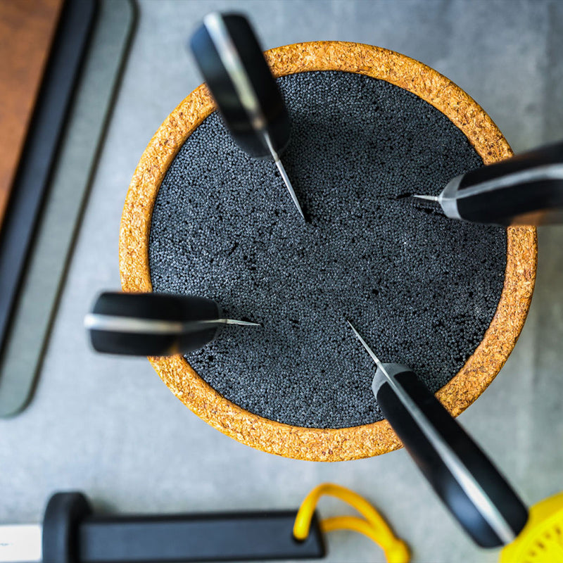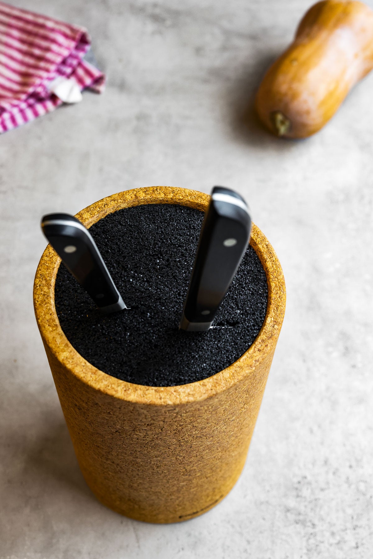 Constructed from 100% cork, the Endeavour Knife holder is extraordinary flexible, a plus for every creative chef. The simple design lets you easily store any combination of knives.