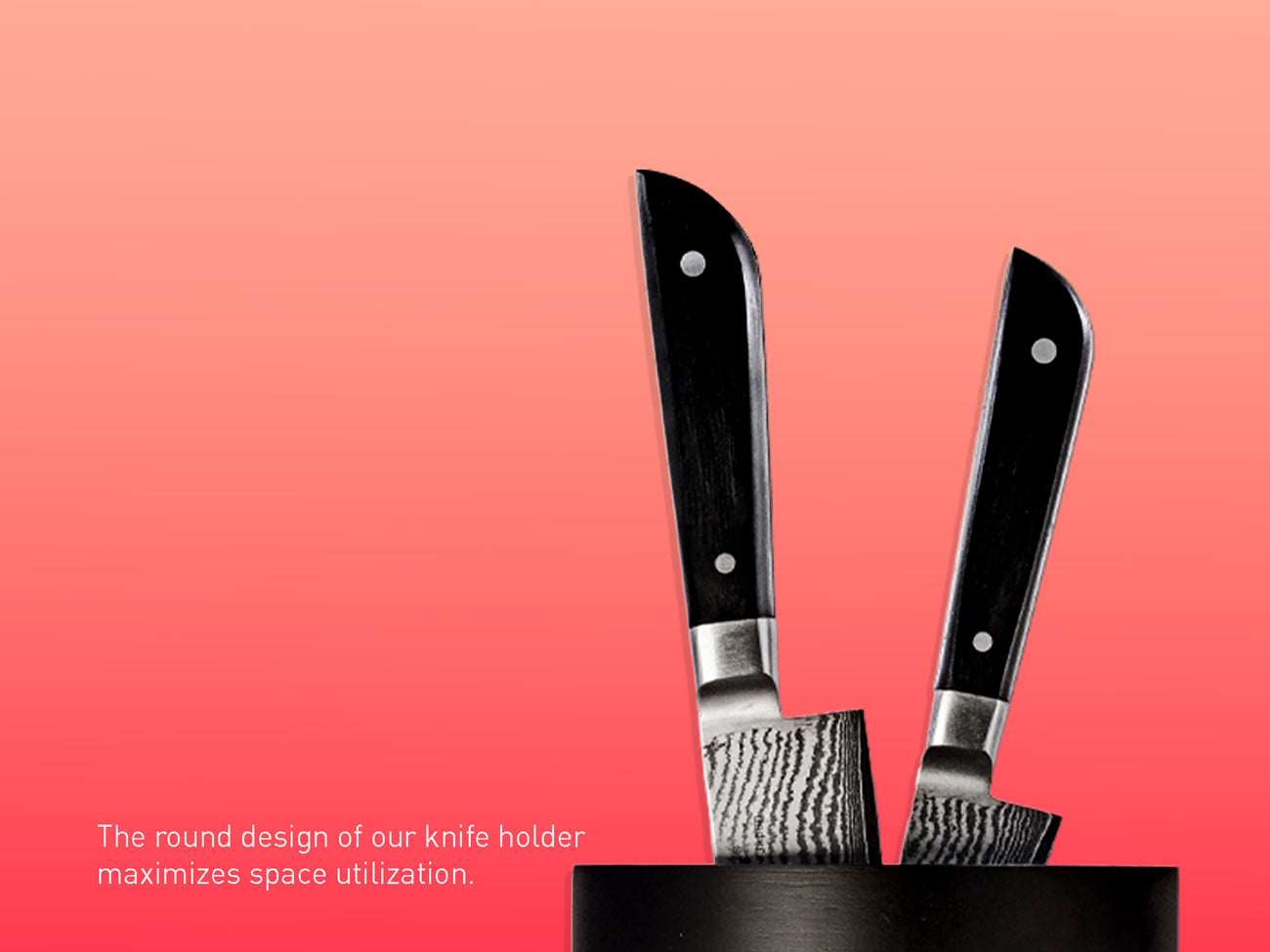 The round design maximizes space, unlike conventional knife holders.