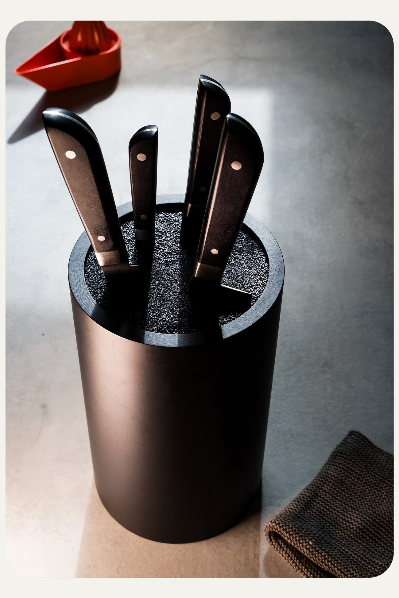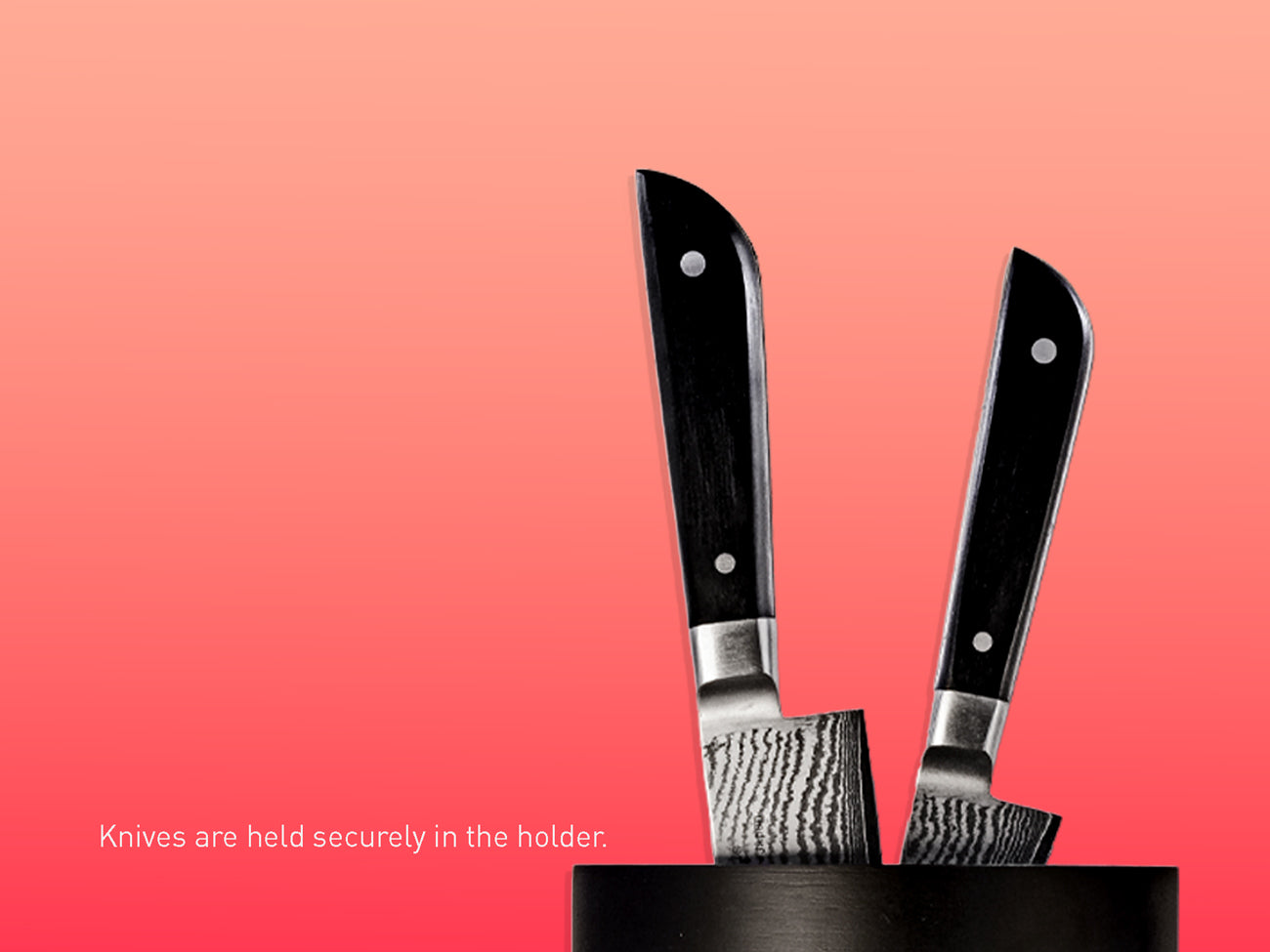 The knife holder lets you arrange your knives exactly as you like.
