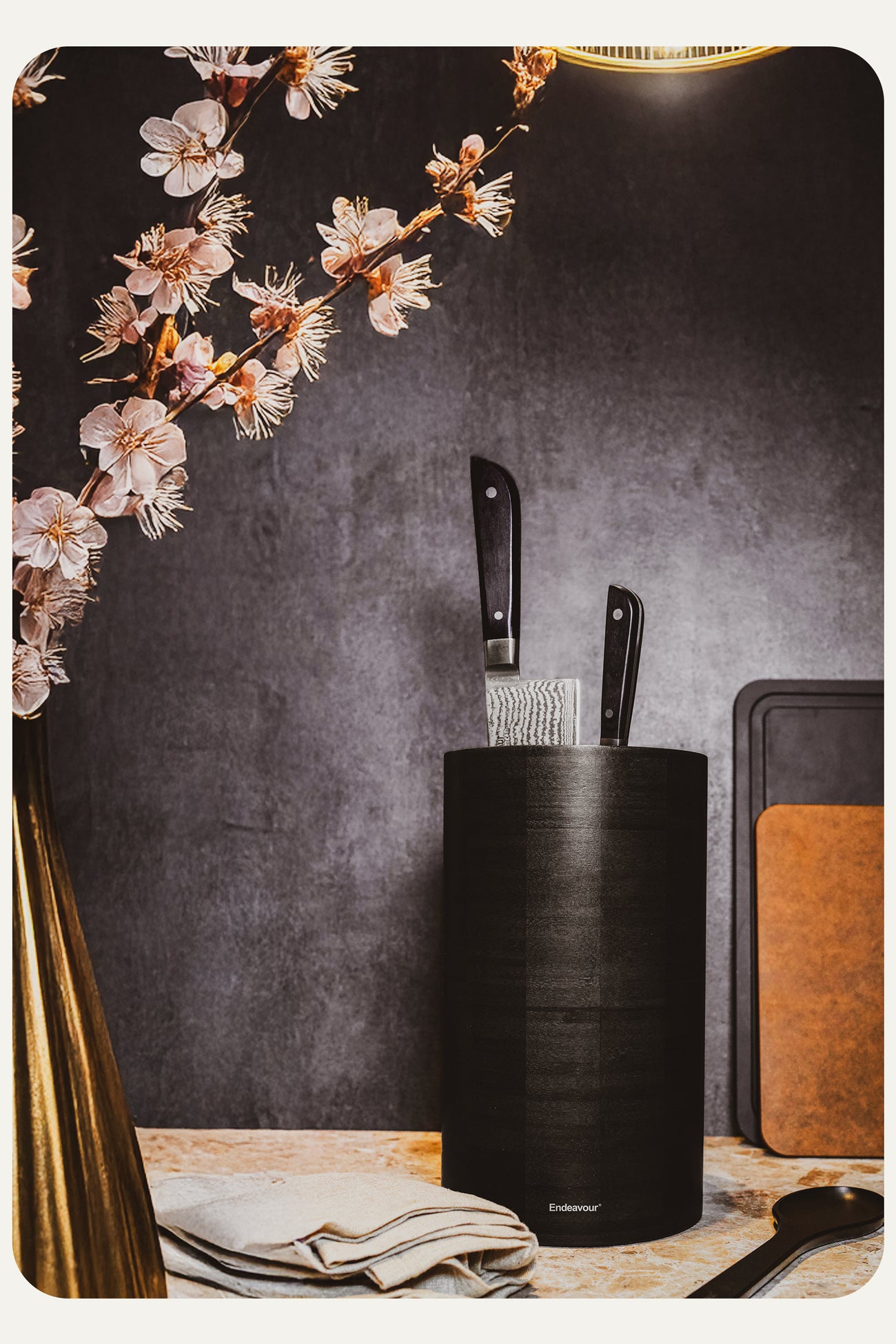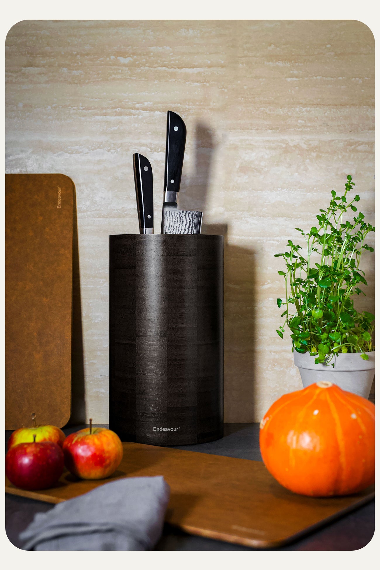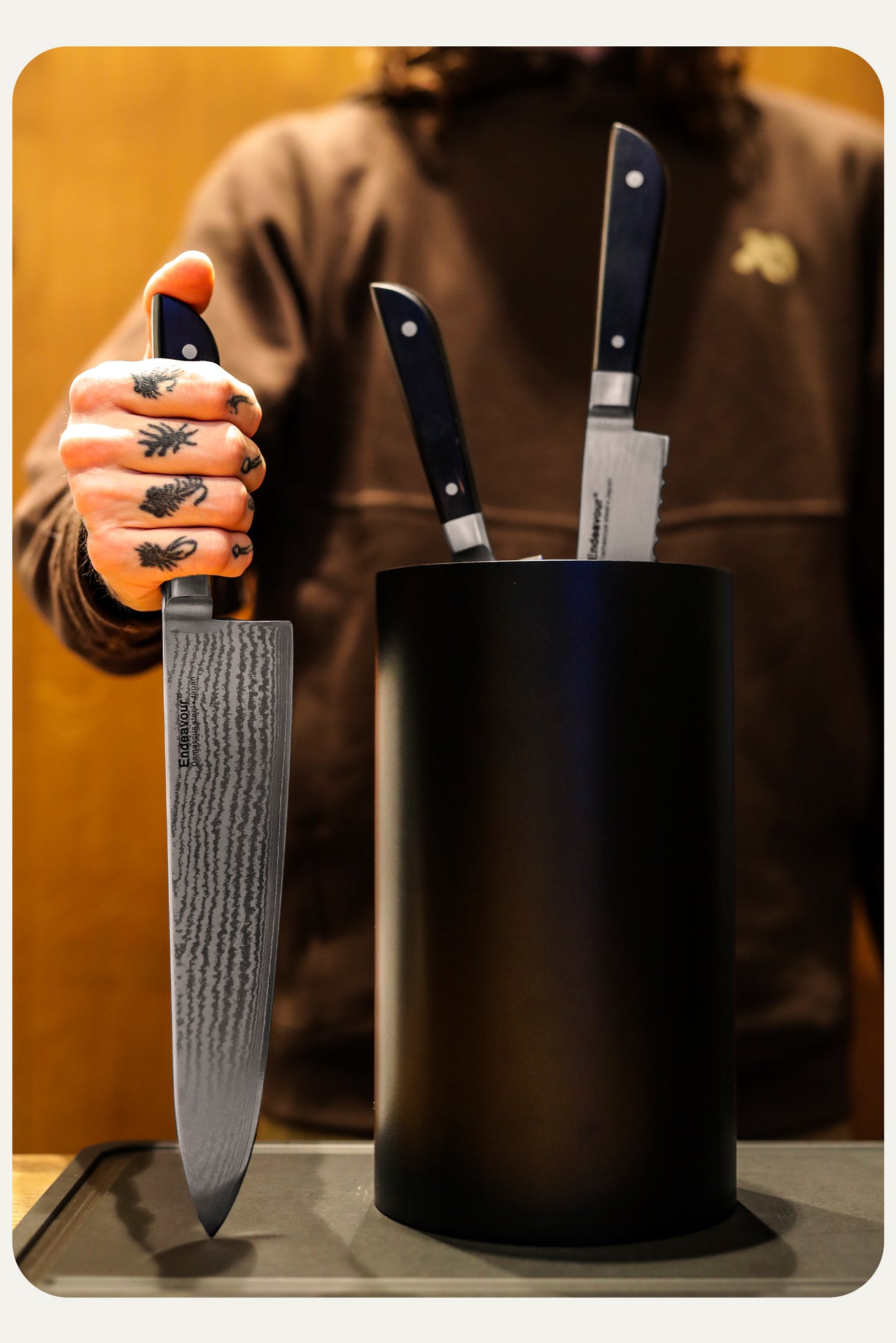 Endeavour's knife holder stands out for its unparalleled uniqueness, often imitated but never replicated. Designed to provide durable protection for knives while optimizing space, this holder has stood the test of time for nearly two decades. It has evolved into a contemporary classic, gracing the kitchens of professionals and everyday households worldwide.