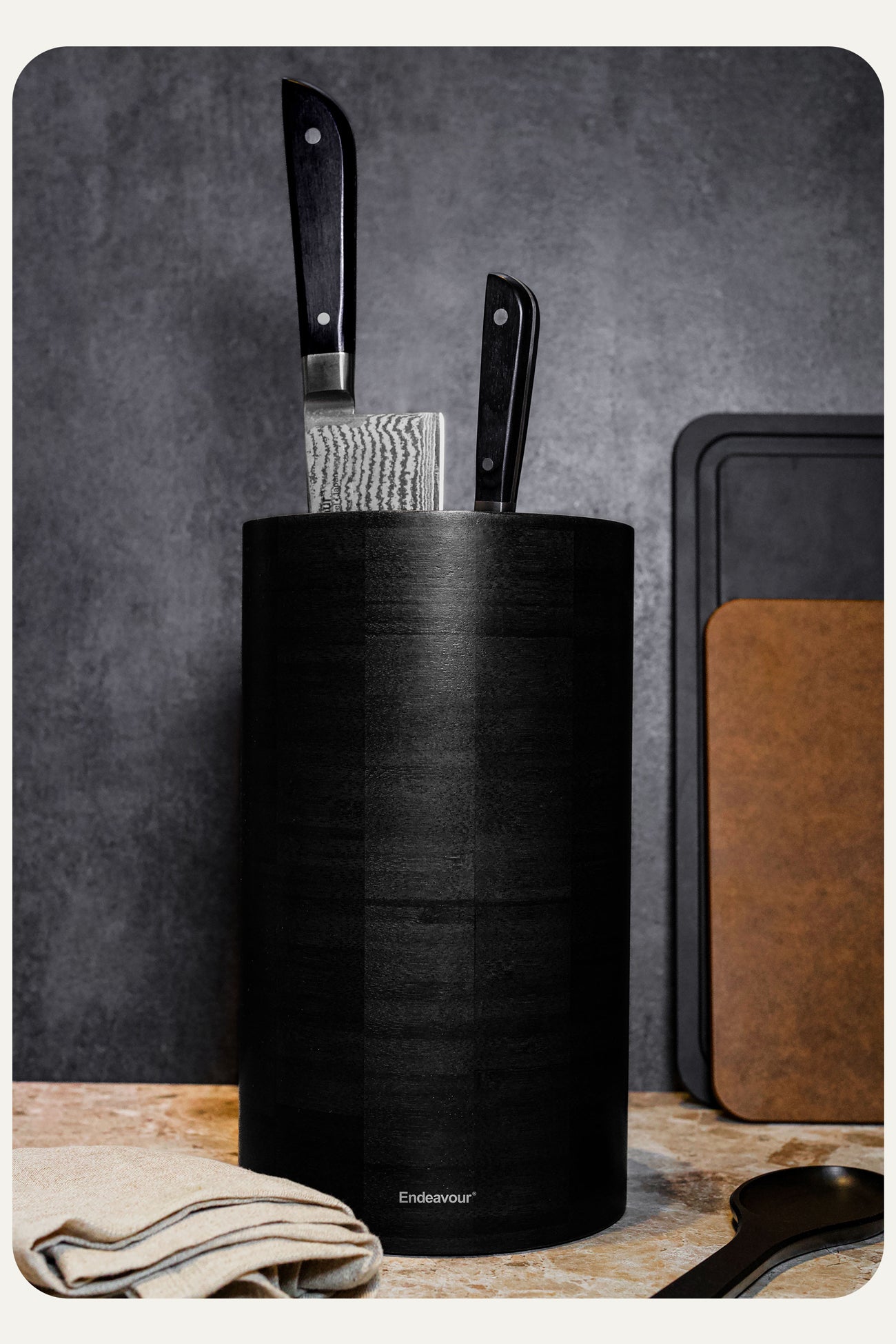 - Unique design: The Black knife holder, created by Endeavour, is safeguarded against copies.