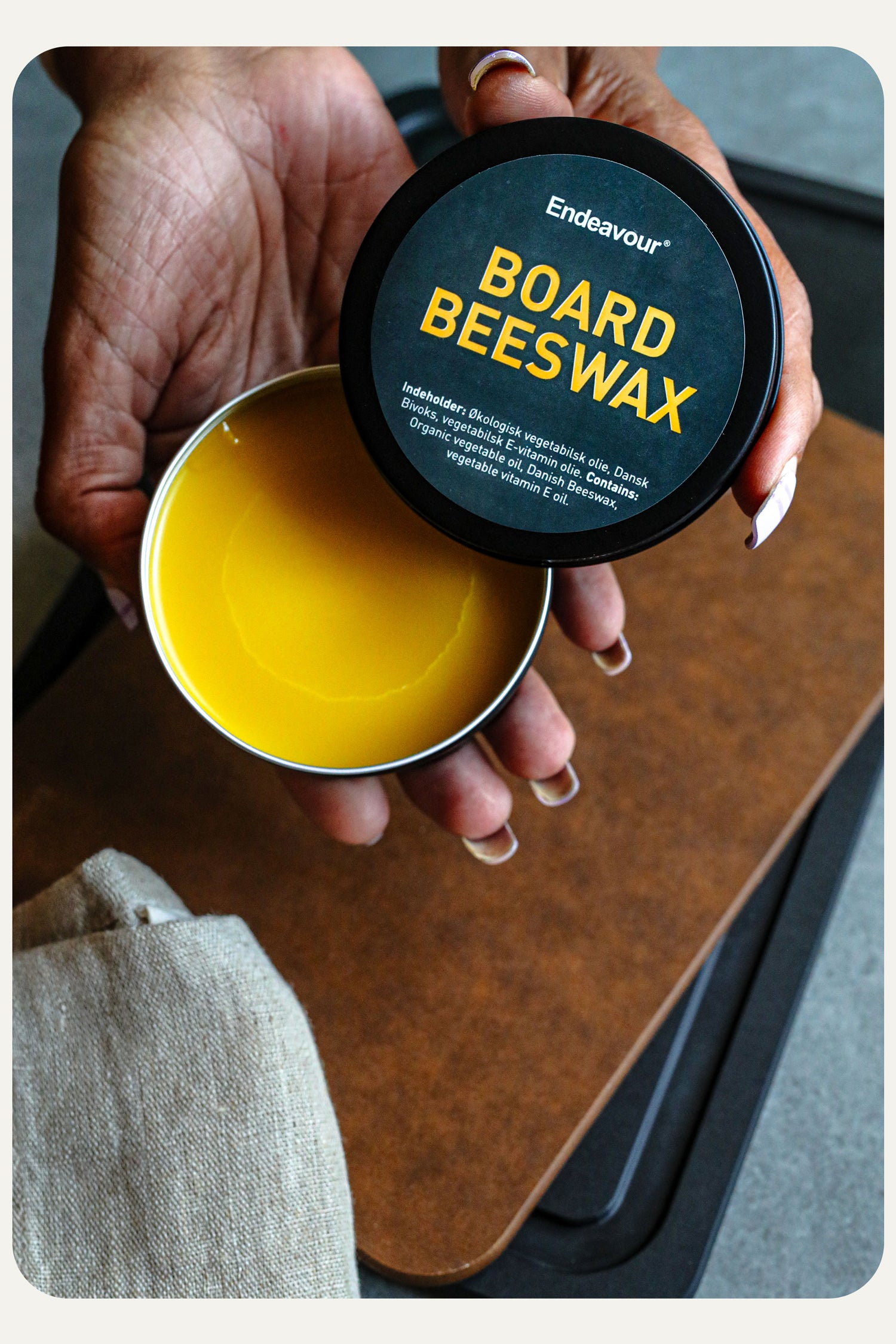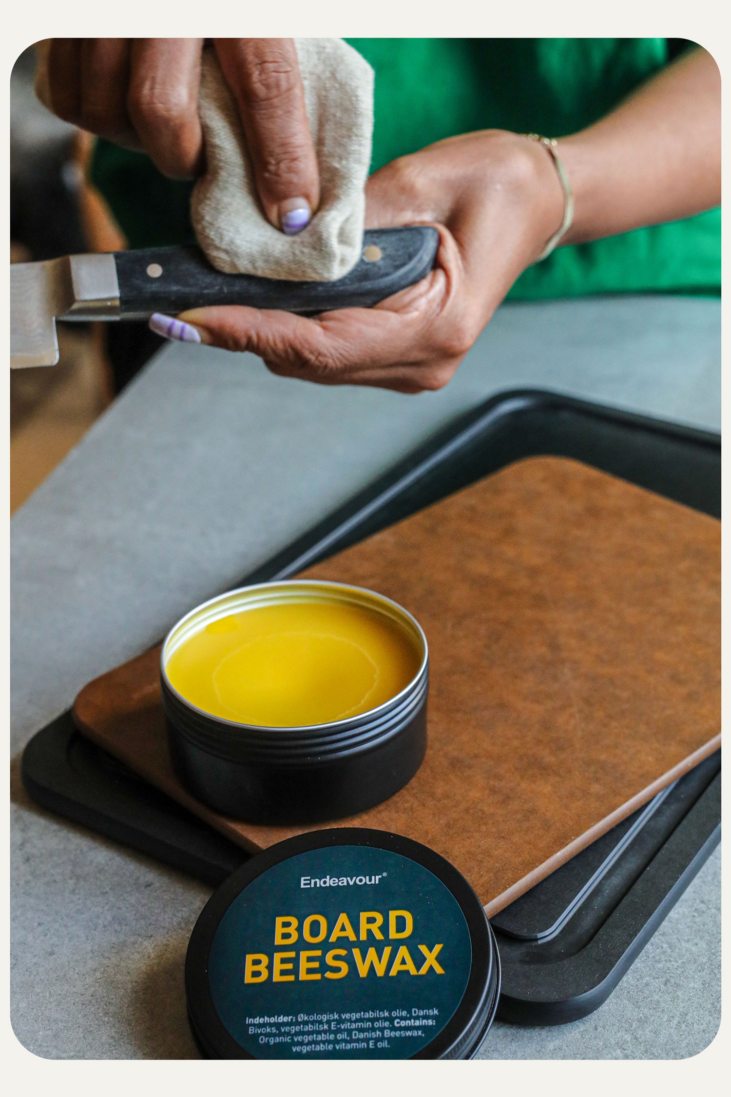 Clean the wood thoroughly and dry it completely. Then apply the beeswax with a sponge, let it sit for a few minutes, and wipe off any excess wax with a clean cloth. It’s simple, quick, and easy. With Endeavour’s technical beeswax, your utensils will regain their shine in no time.