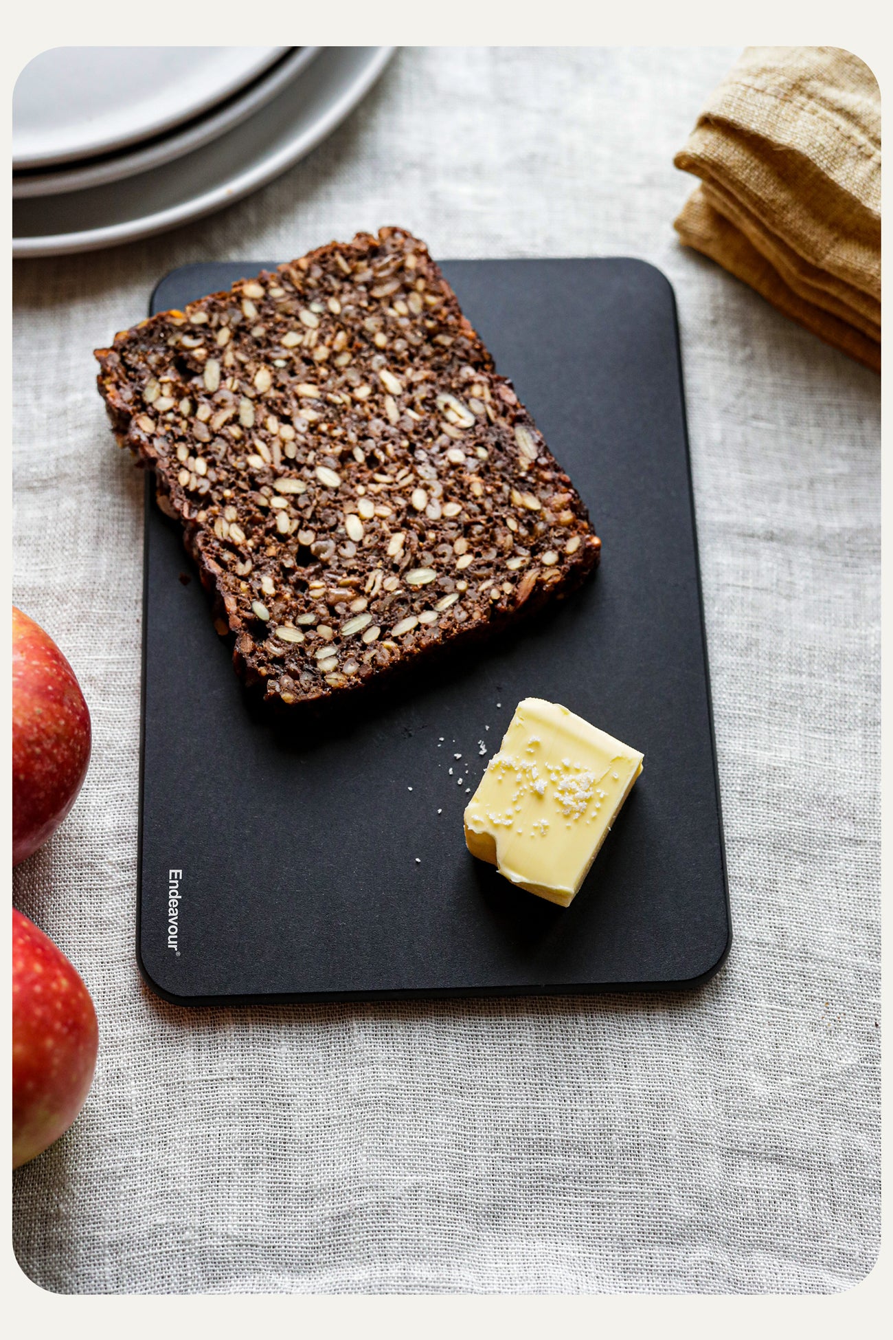 The package contains 4 smaller cutting boards, which have multiple functions. You can use them as butter boards, for small cutting tasks, or when setting the table as side plates. Since organic fiber is heat-resistant up to 170°C, they can also be used for placing hot items. These small, lightweight cutting boards are perfect for all the smaller and quick tasks in everyday kitchen use.