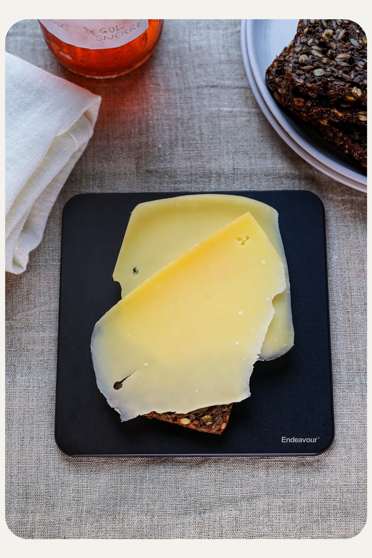 The cutting board is made from FSC®-certified organic fibers sourced from sustainable forestry. A durable and heat-resistant material that protects the knife edge and withstands temperatures up to 170°C, making it ideal as a base for hot pots. It is through-colored in Night Black. Organic fiber also resists discoloration from food – offering both hygienic and aesthetic benefits.