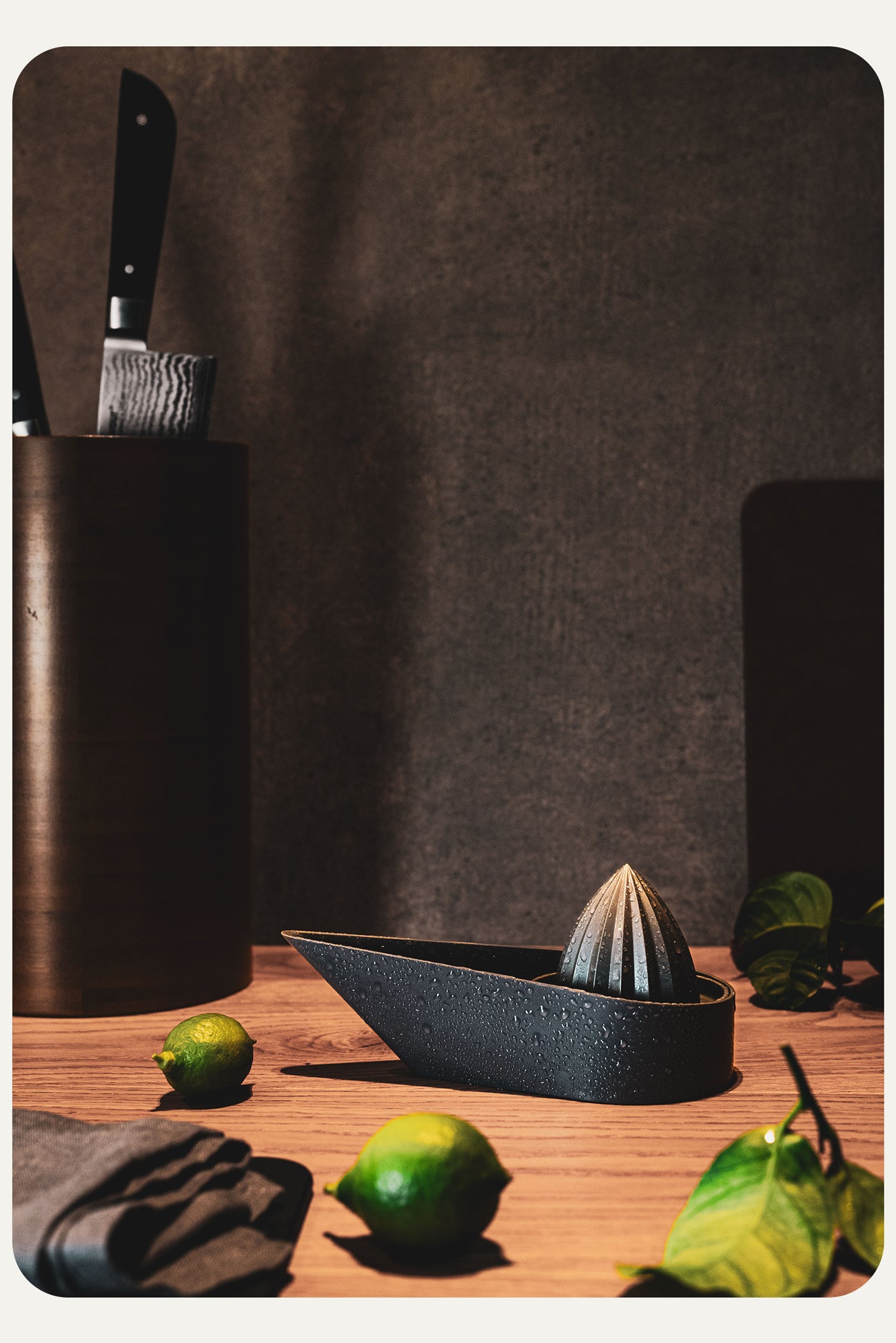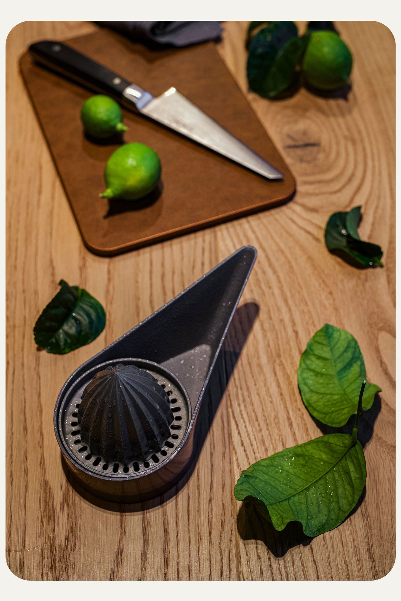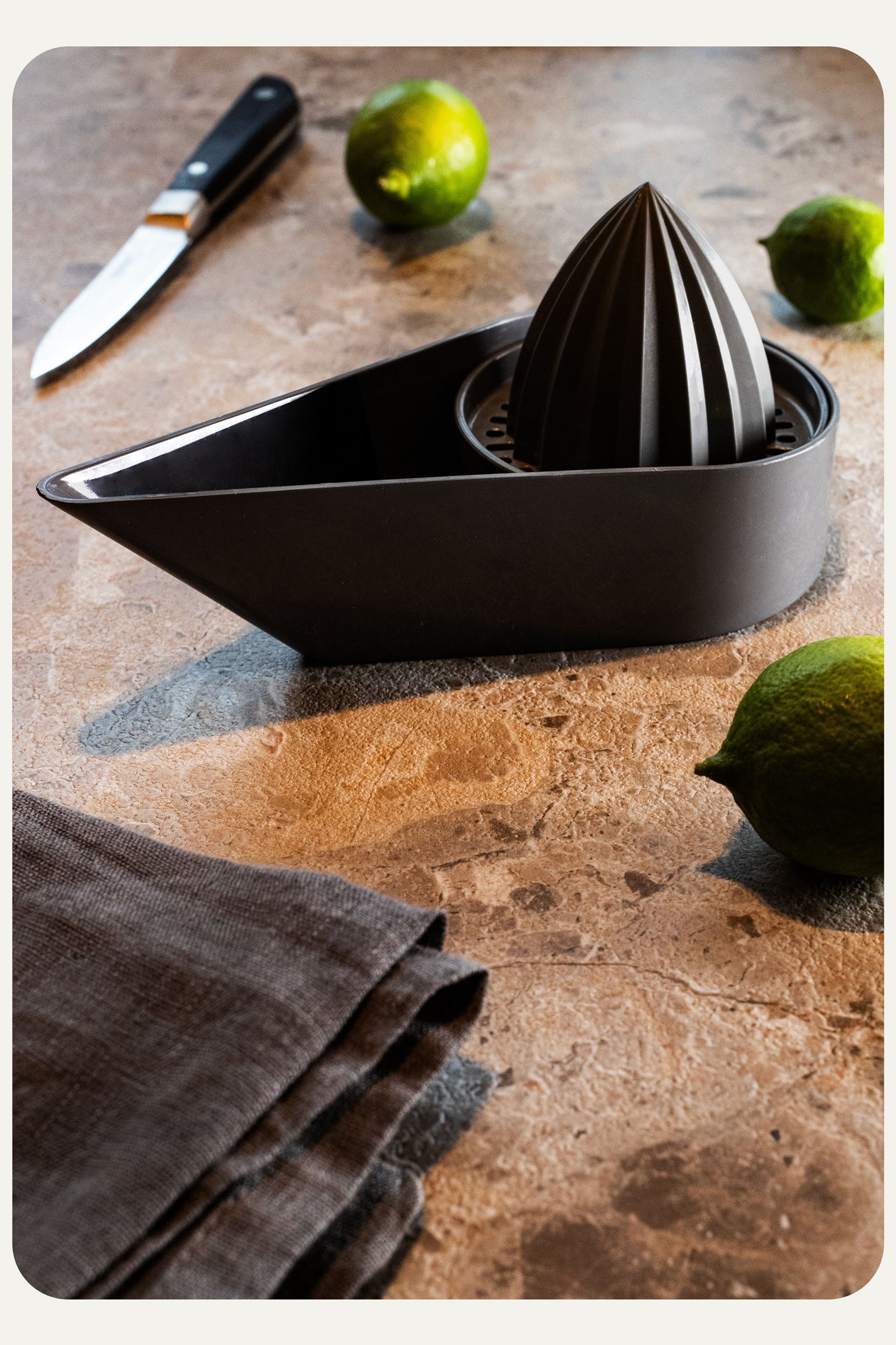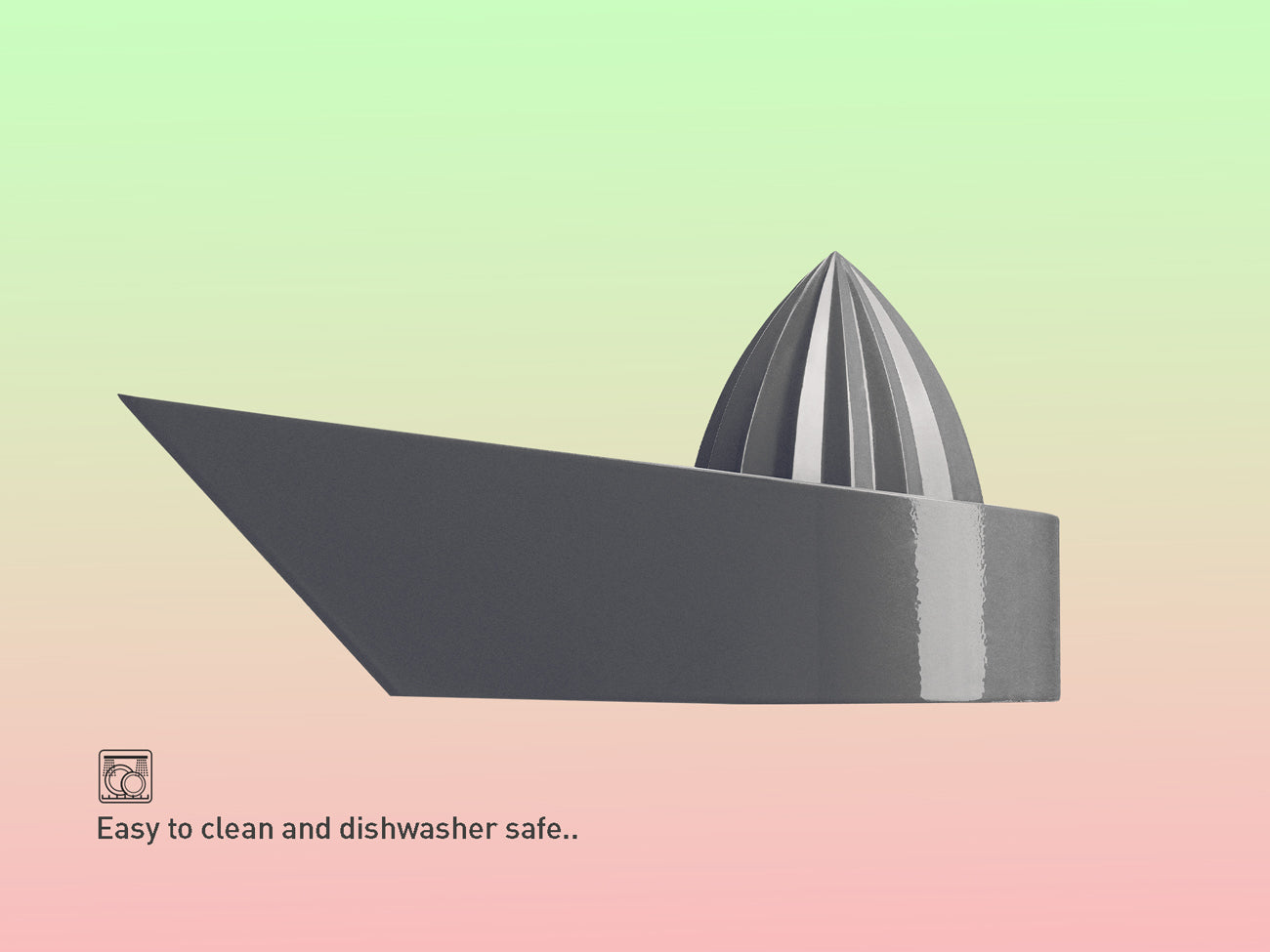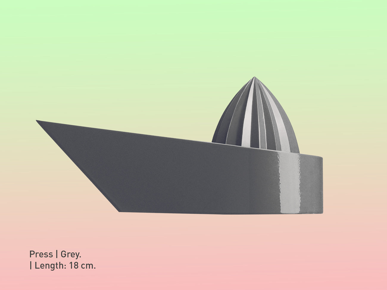 The classic citrus press has been updated with a modern twist, while respecting its history. The design is inspired by an old-fashioned newspaper boat but made slimmer and stylishly iconic.