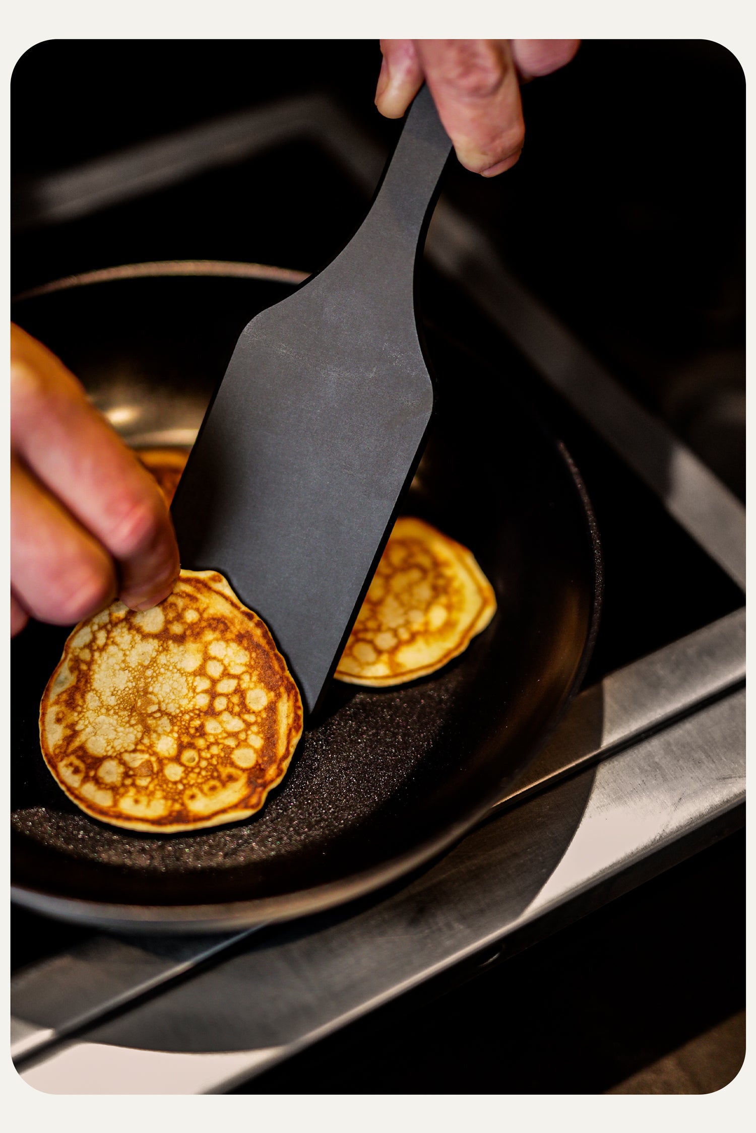 The spatula is made from FSC®-certified organic fibers sourced from sustainable forestry. The material is robust, withstands heat up to 170°C, and retains its color after use. The spatula comes in Night Black, preventing absorption of food colors.
