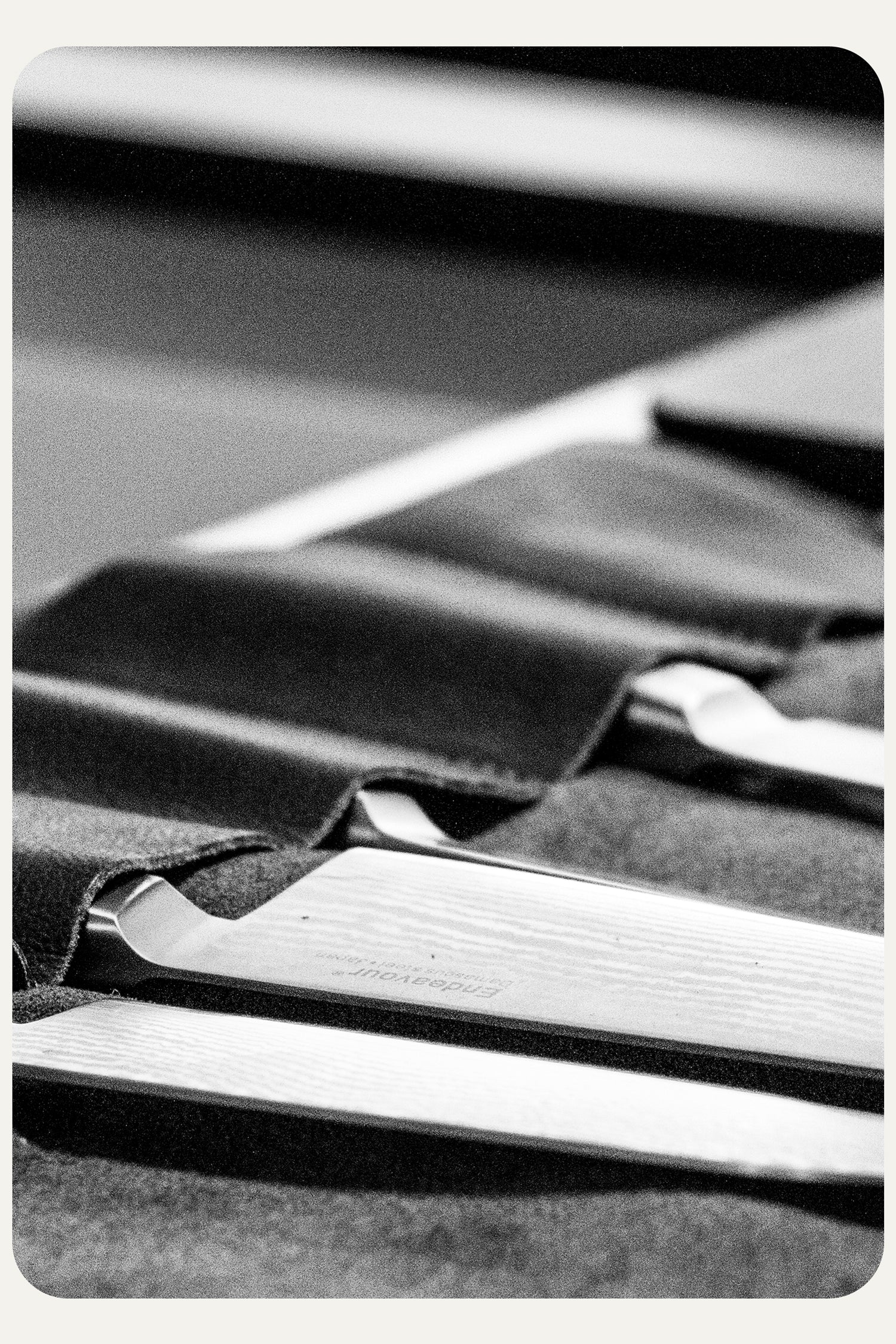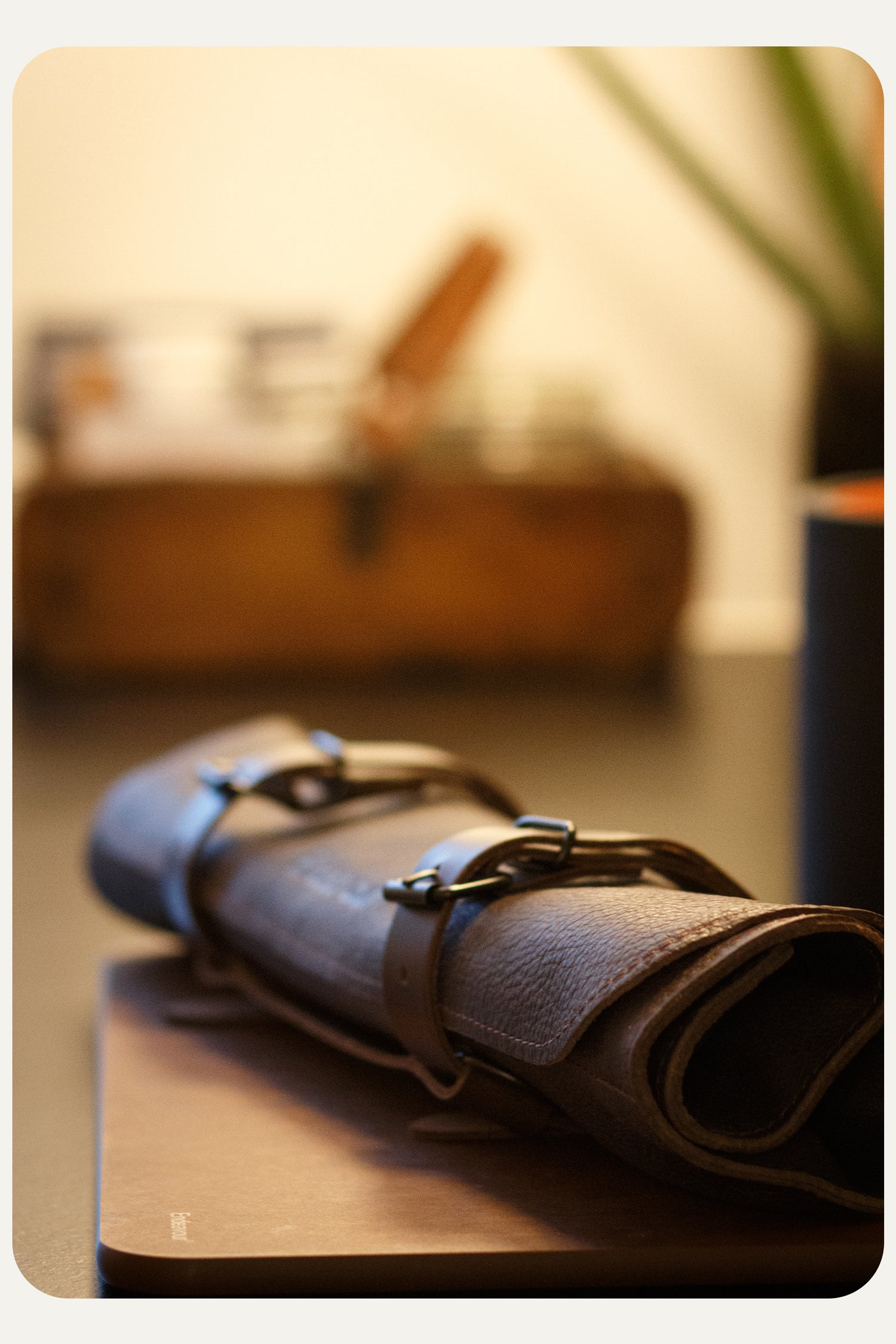 The knife bag is handcrafted in Holland and made from the finest European buffalo leather. The full-grain leather is carefully treated with only color and oil – nothing else. The result is the softest and most durable leather achievable. A knife bag ensures that knives are not damaged during transport. Professional chefs prefer knife bags to transport their knives. This one can contain 10 chef knives.