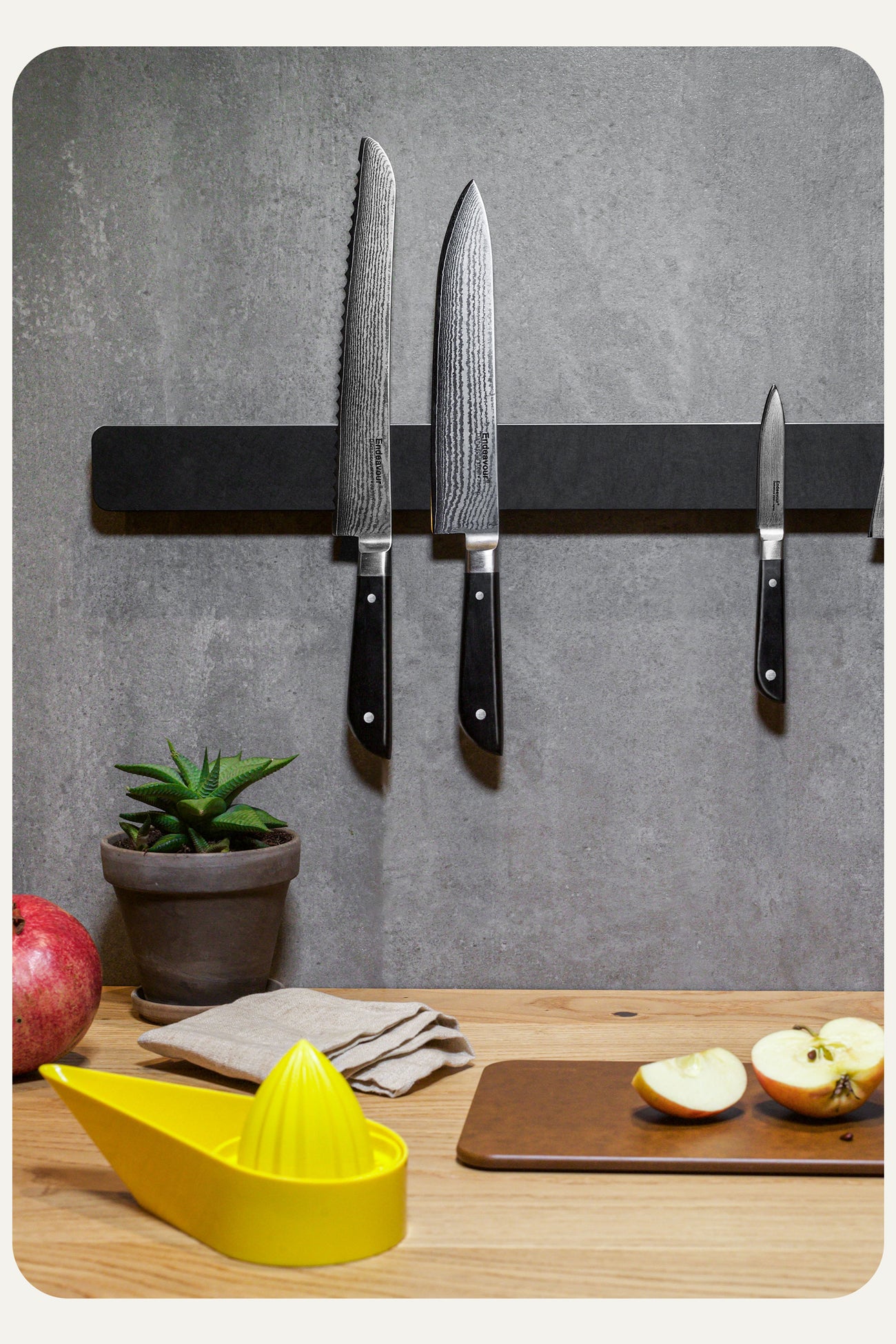 The knife magnet long is made of FSC®-certified organic fiber - sustainable compressed fibers. With hidden powerful magnets that ensure a strong hold for your knives. Stylish design with a functional shape. Holds up to 14 knives.