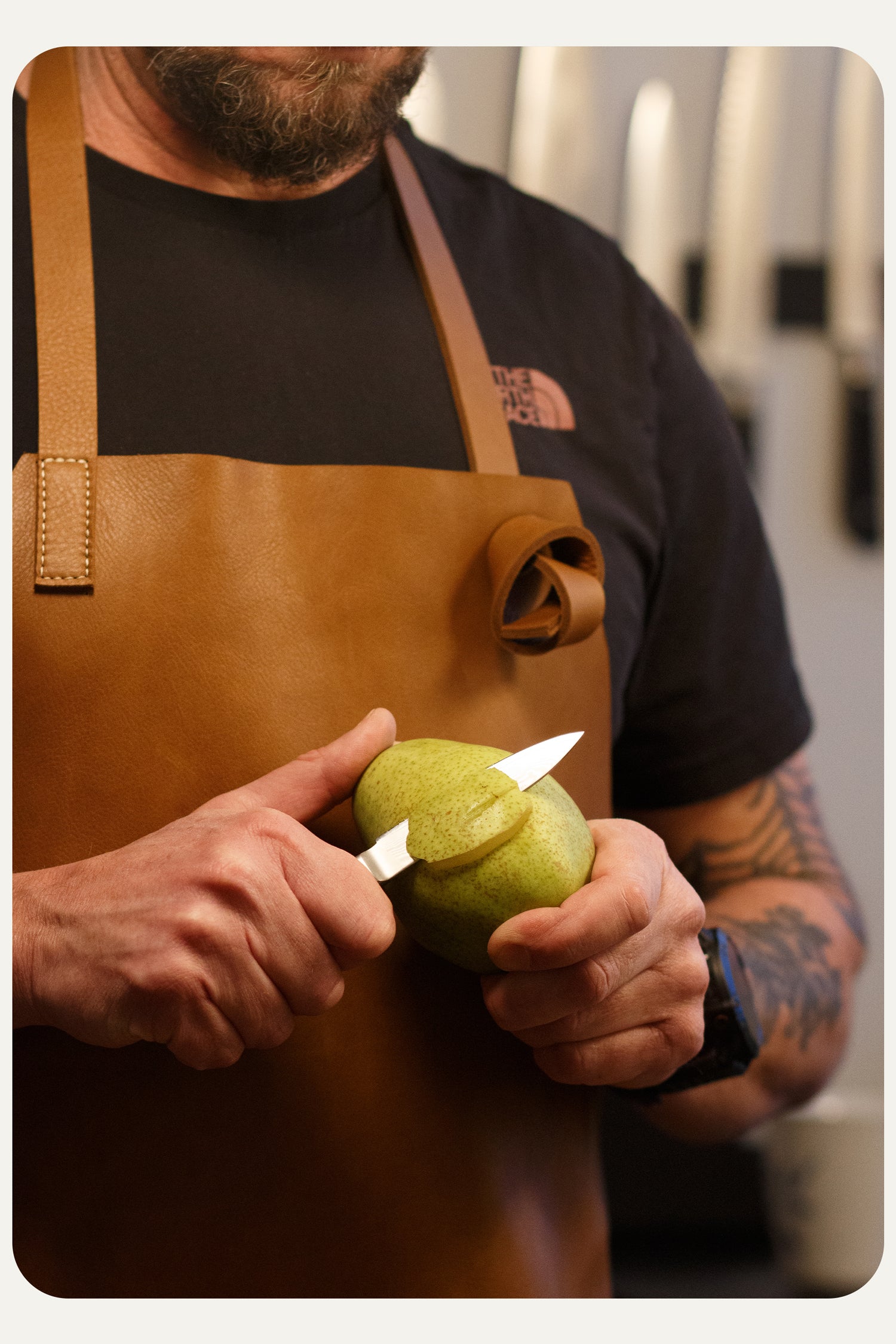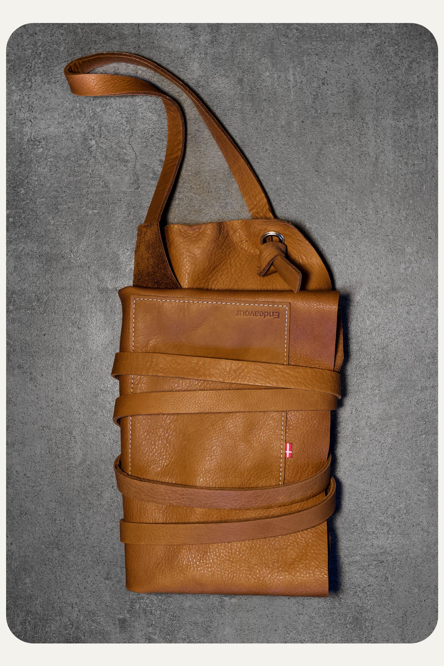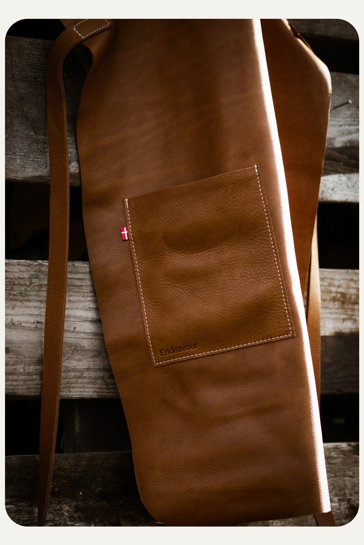 The leather aprons combine a raw and modern aesthetic. Featuring a functional design, they are stylish and practical. Designed by Endeavour Denmark. All aprons are original designs and will be protected against copying.