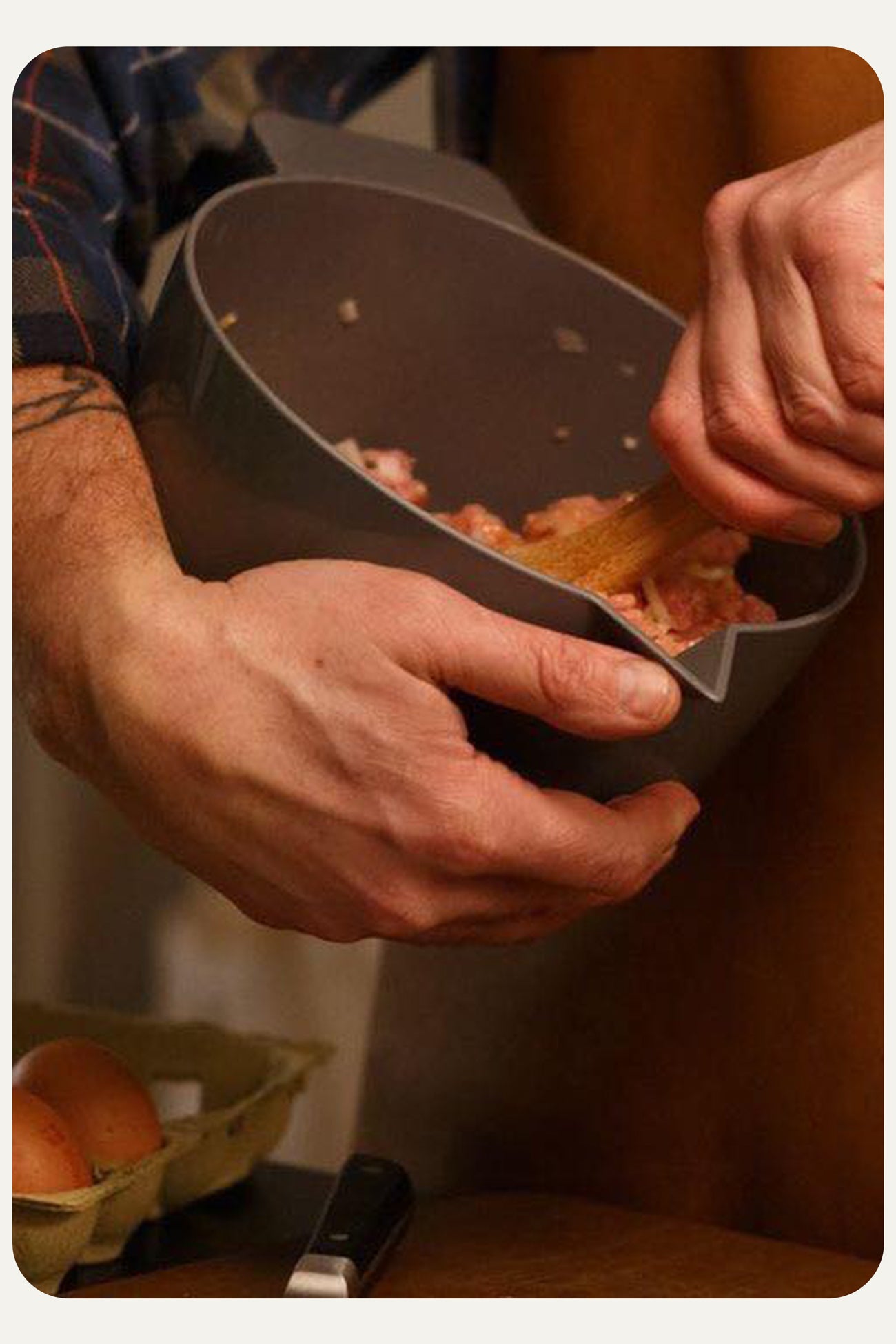 The design is thoughtfully crafted from start to finish – featuring a practical handle and a non-slip silicone base that keeps the bowl stable. Mixing ingredients is easy, and the convenient spout on the Master Bowl makes it simple to pour into serving bowls without spilling.