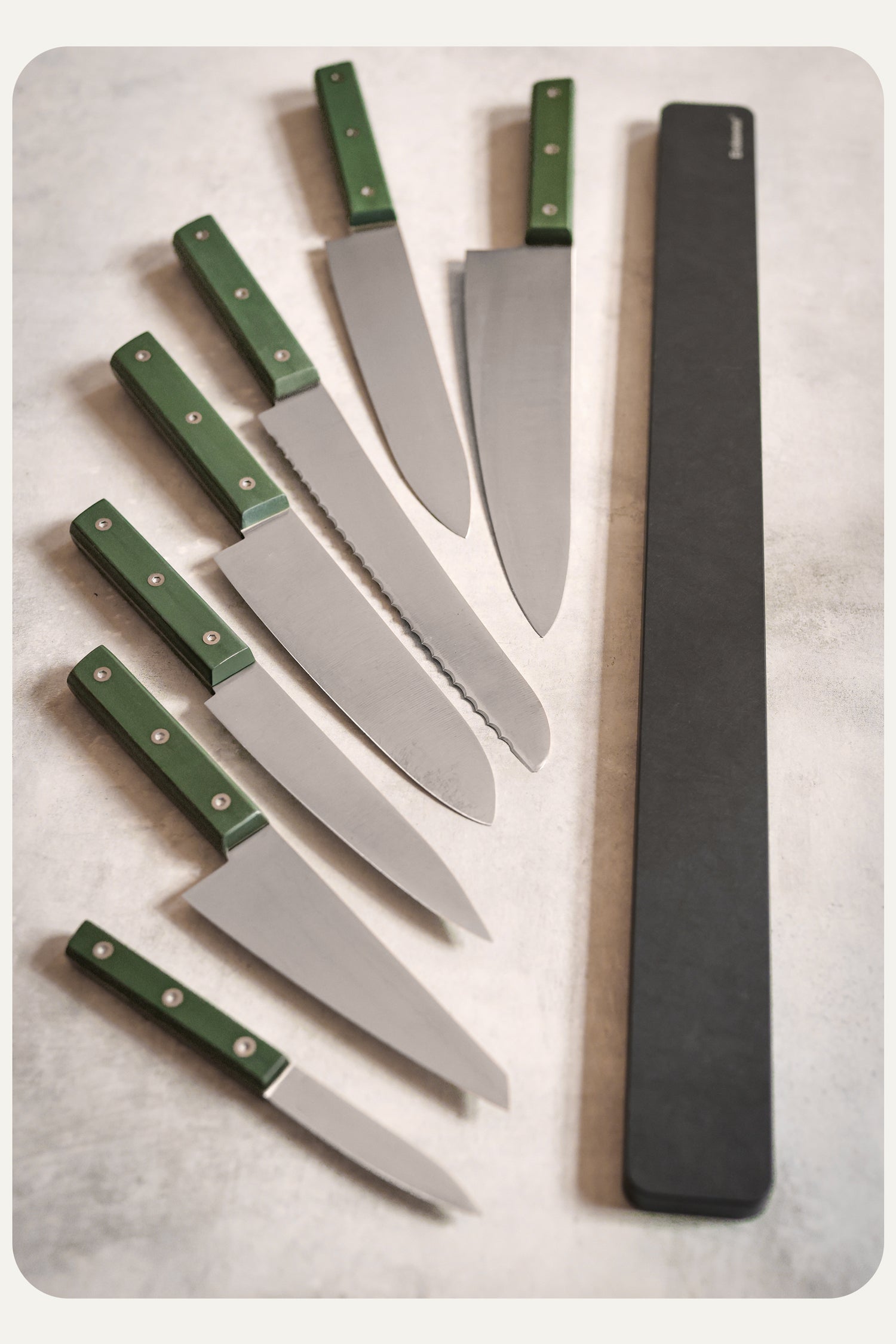 In addition to the knives, the set also includes the Knife Magnet Long, which is both practical for storing knives and exudes purity and elegance in the kitchen. With this option, your kitchen is ready for even the most demanding tasks.