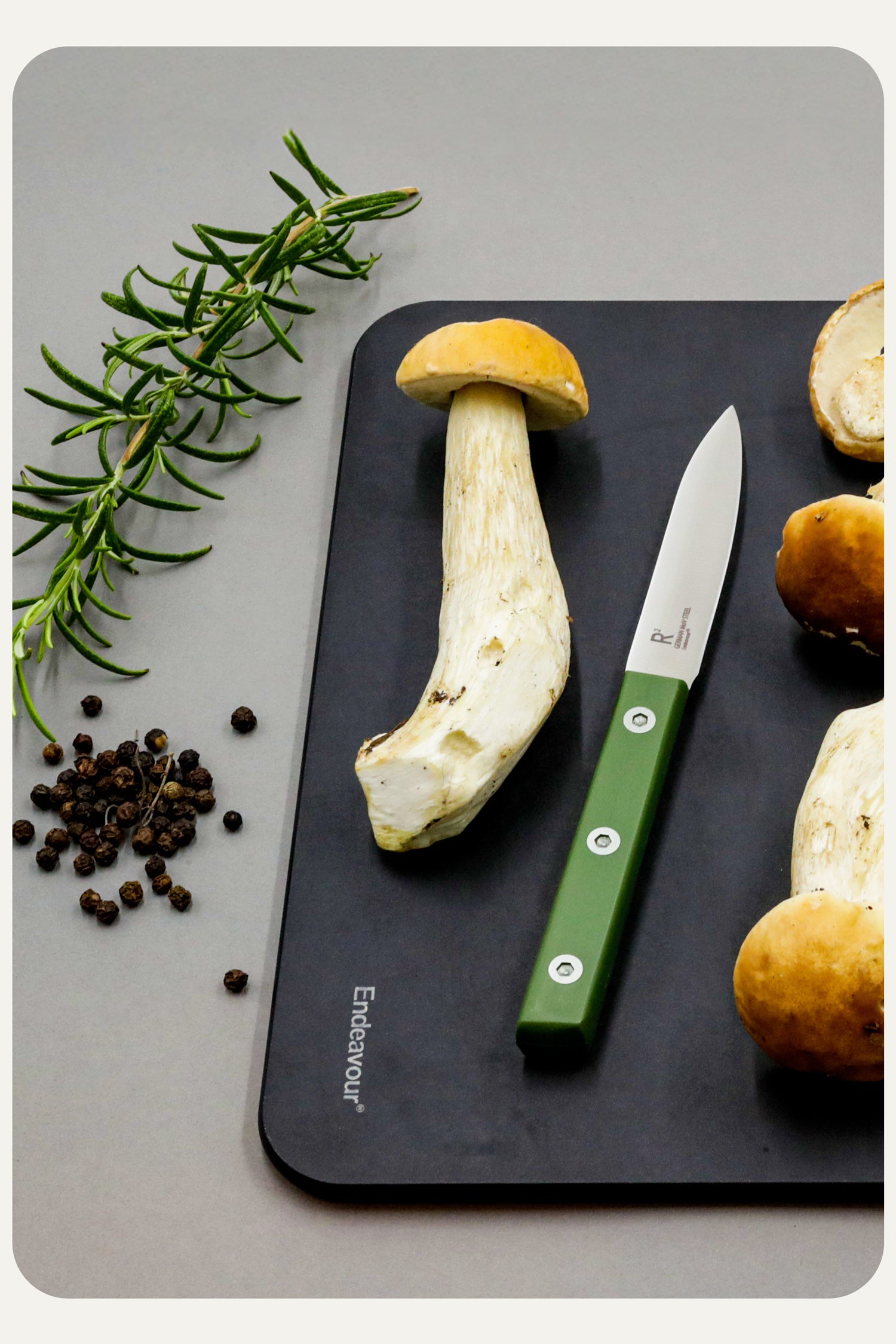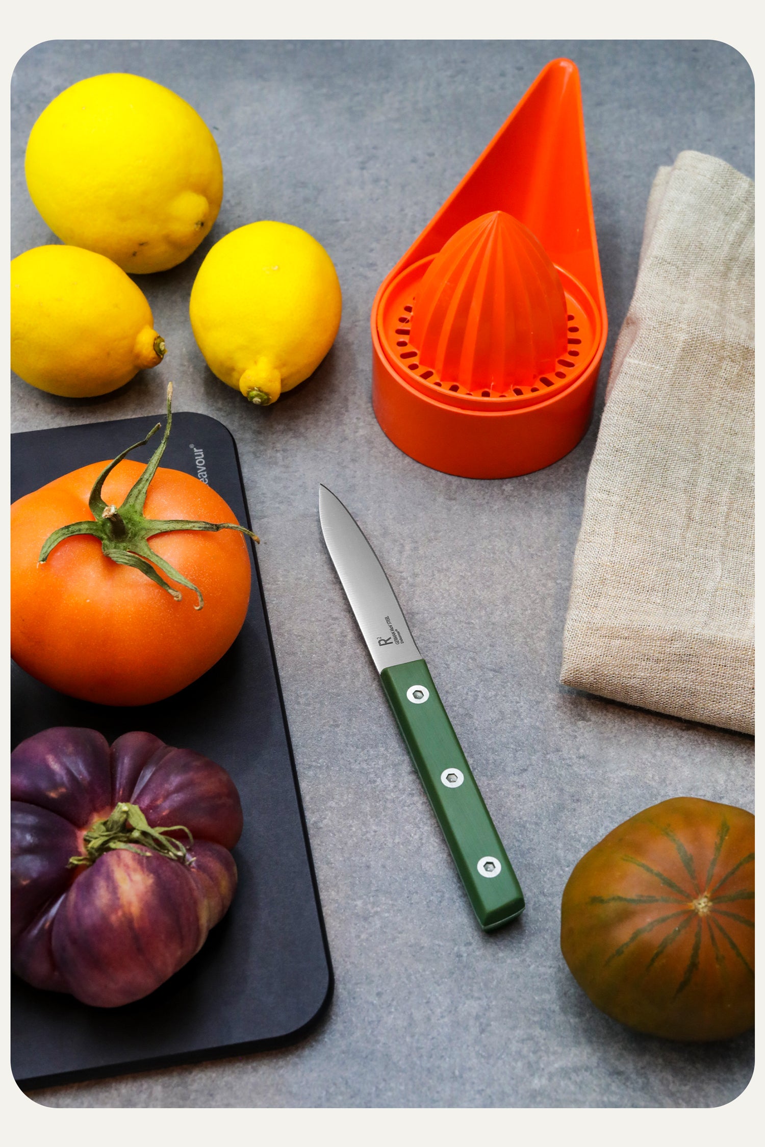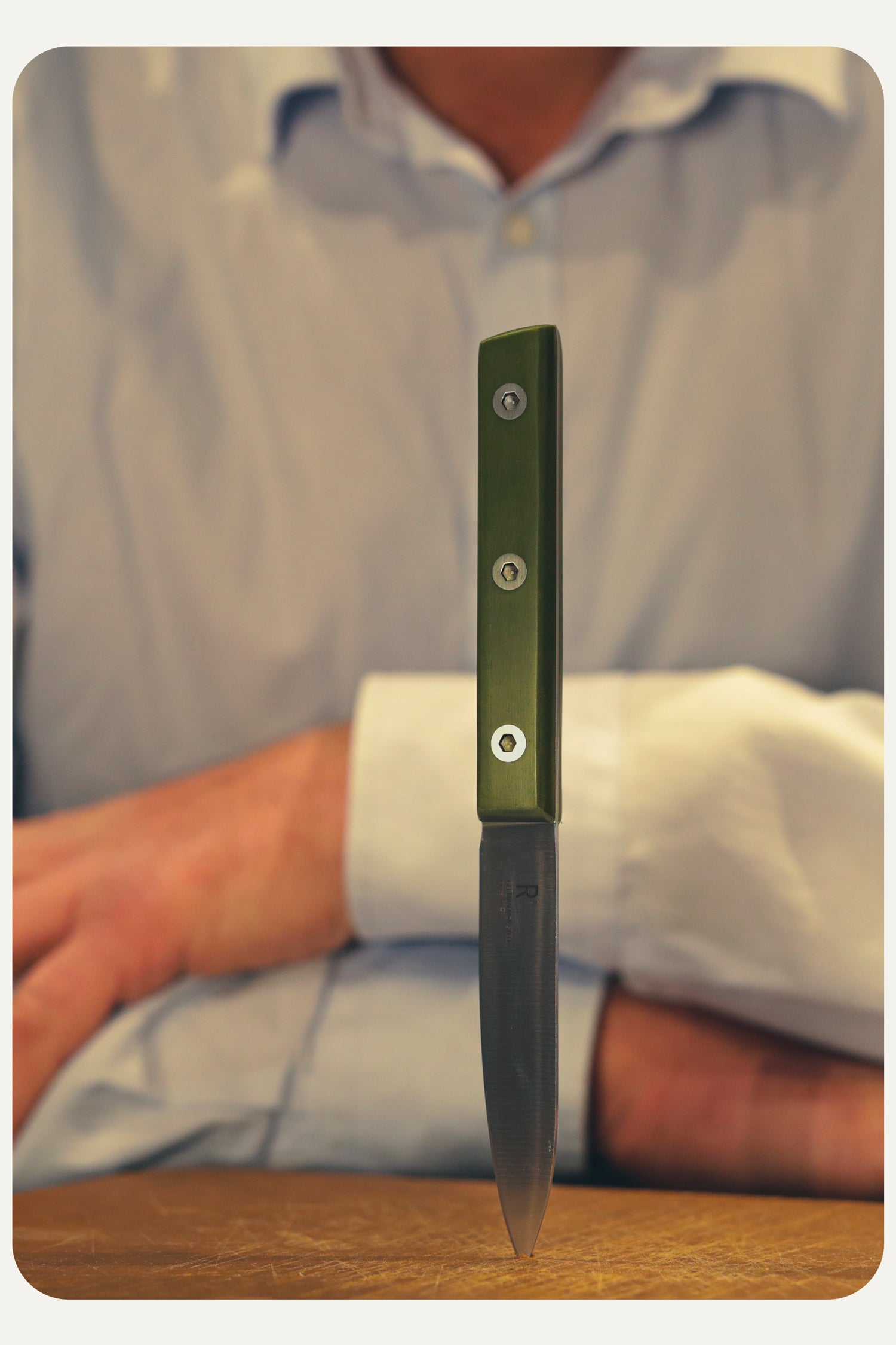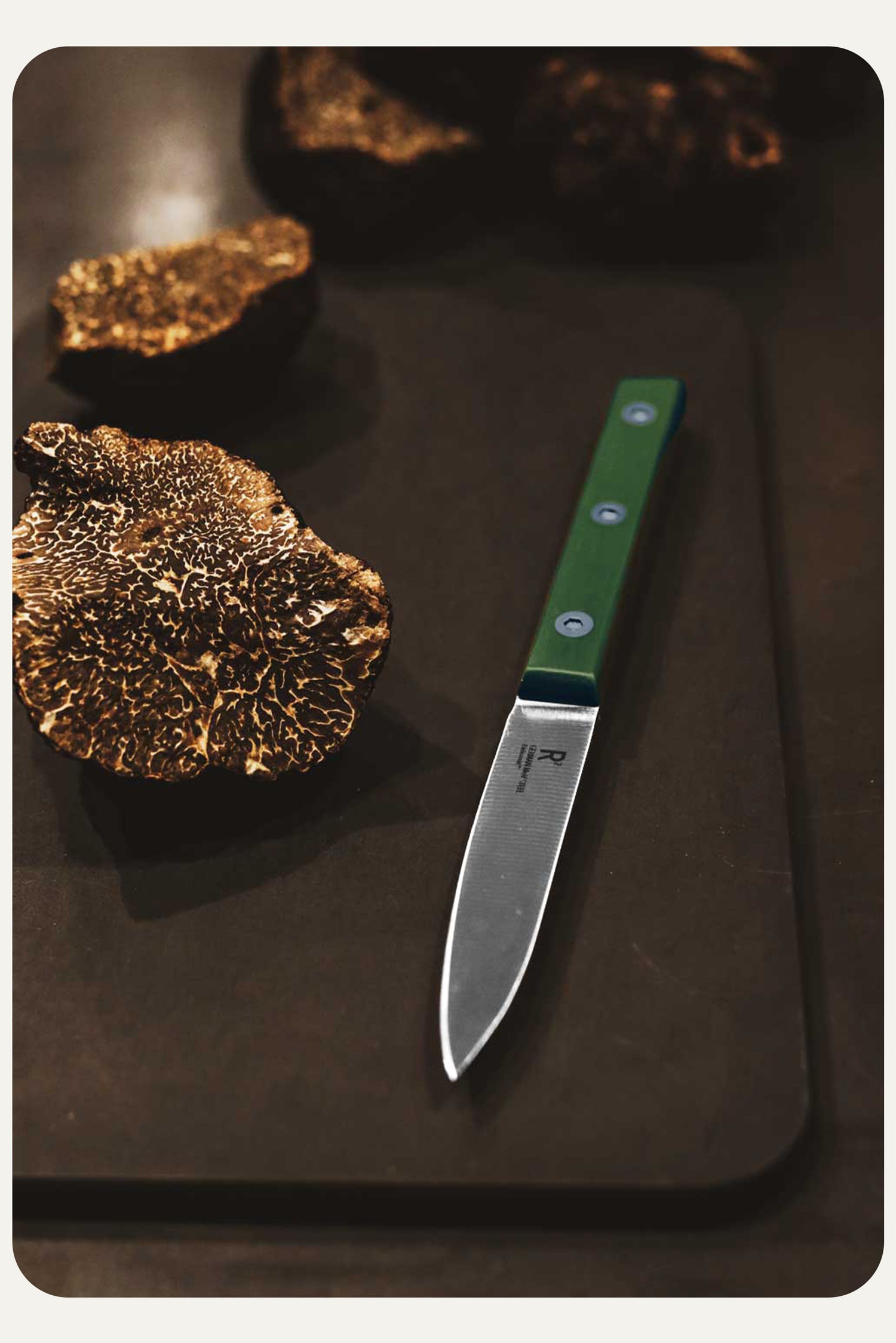 Resolution R2 is made from German Mov stainless steel. It has a hardness of HRC 55-57 and is both highly durable and supremely functional. This little paring knife is a versatile tool in the kitchen; perfect for cleaning, peeling and slicing herbs and vegetables.
