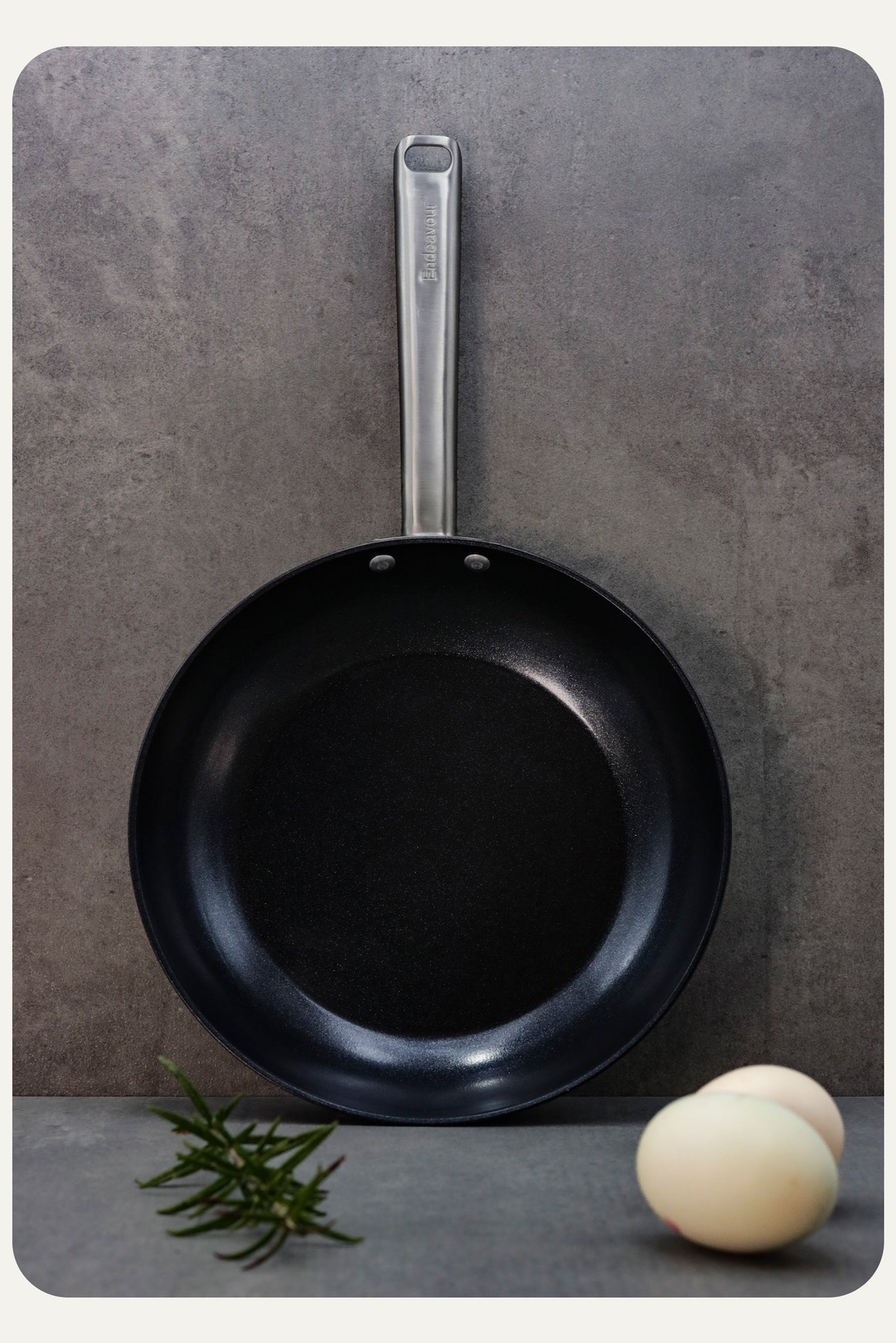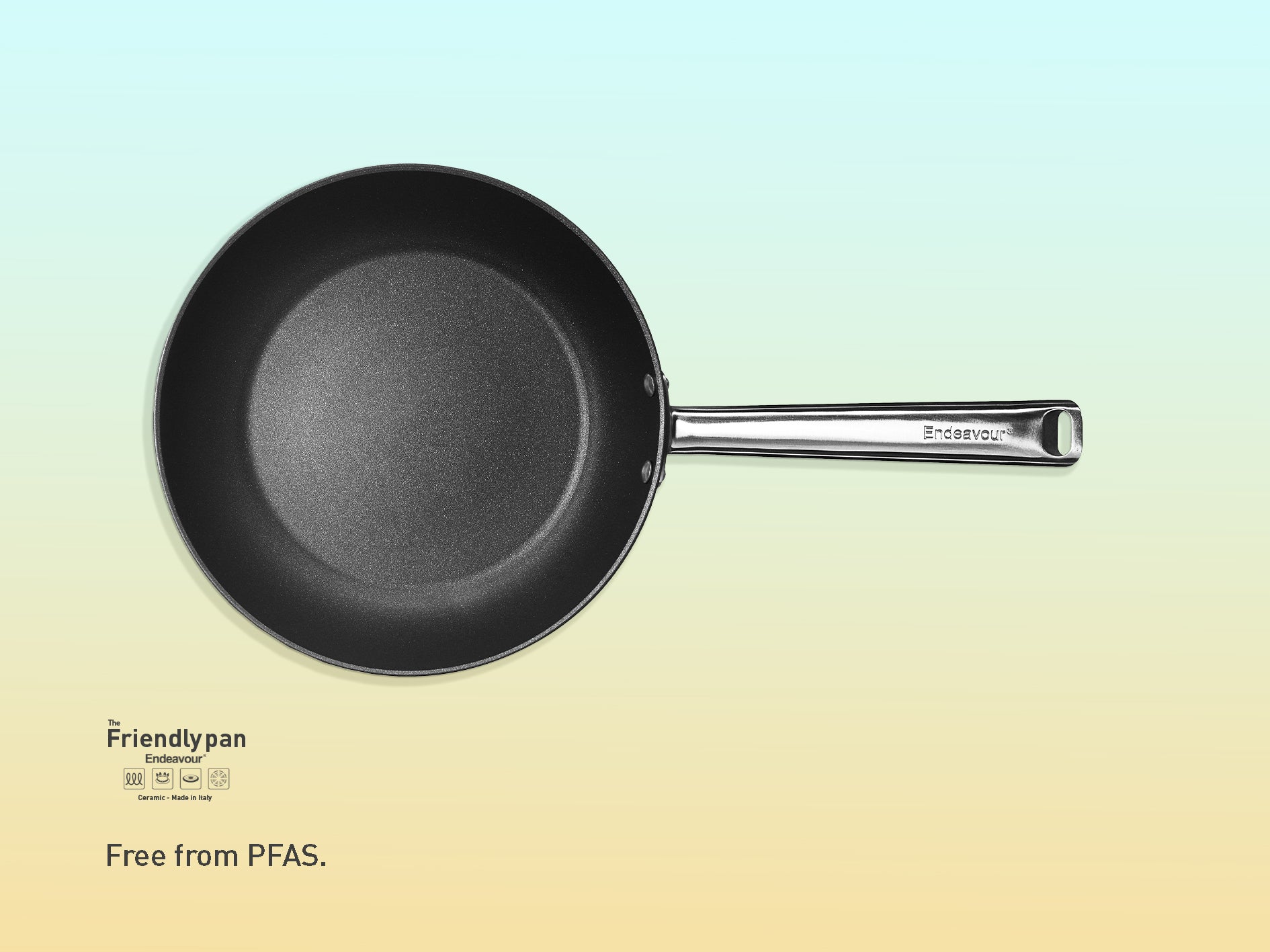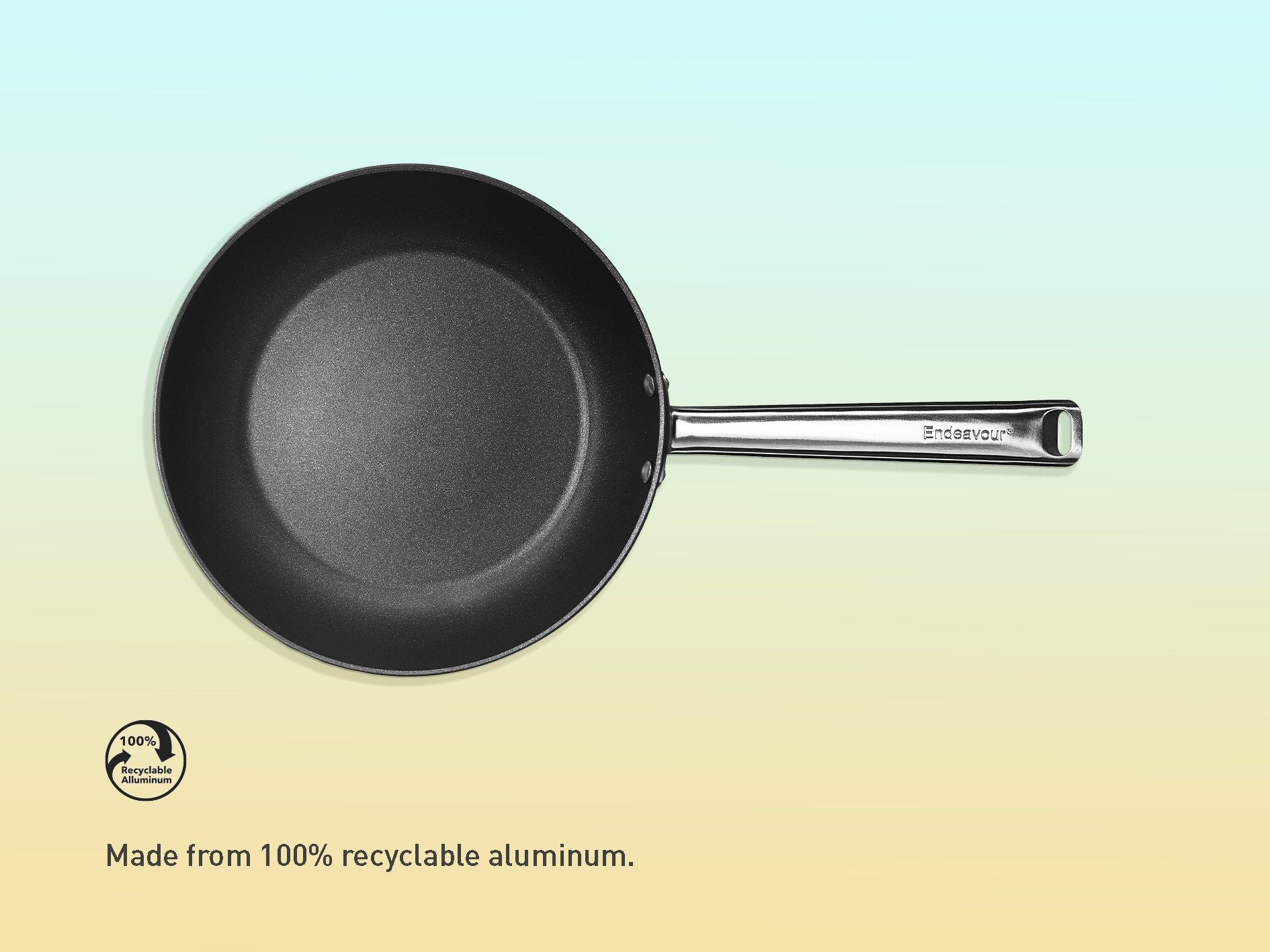 The Endeavour ceramic pans are our flagship products in the realm of eco-friendly cookware. They are manufactured in Italy using 100% recyclable aluminum and feature a ceramic coating that is free of PFAS. The ceramic non-stick coating ensures the pan's long-lasting durability and makes it highly resistant to scratches, wear, and food color transfer. The handle is crafted from sturdy stainless steel, making it durable and capable of withstanding daily use and heat. You can easily handle the pan's handle without the need for pot holders.