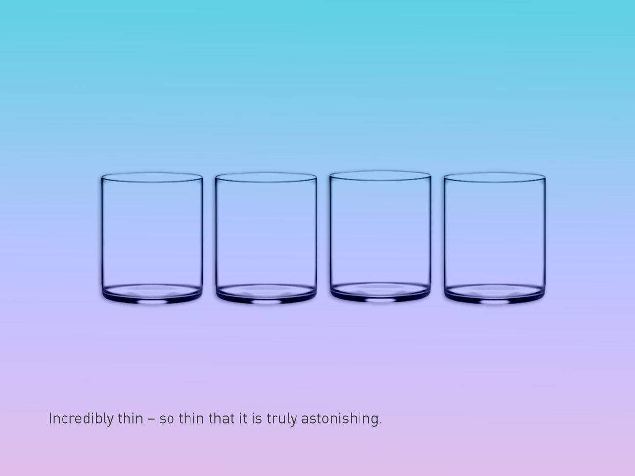 The glass’s form and function are carefully harmonized. The design is both sleek and light, with an expression that is both crisp and classic. The perfectly straight cylinder encloses the water, creating a sense of lightness. The design ensures that it is suitable for any occasion, and the shape guarantees an elegant drinking experience every time.