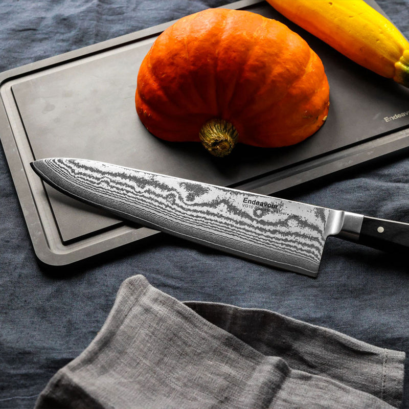 The Discovery Pro series is forged from VG10 steel, combining precision with exceptional craftsmanship. "VG" stands for "V Gold" – a mark of quality that reflects the steel’s outstanding properties. With its ultra-sharp edge and lightweight design, this knife is built for exceptional performance – your ultimate culinary partner in the kitchen.