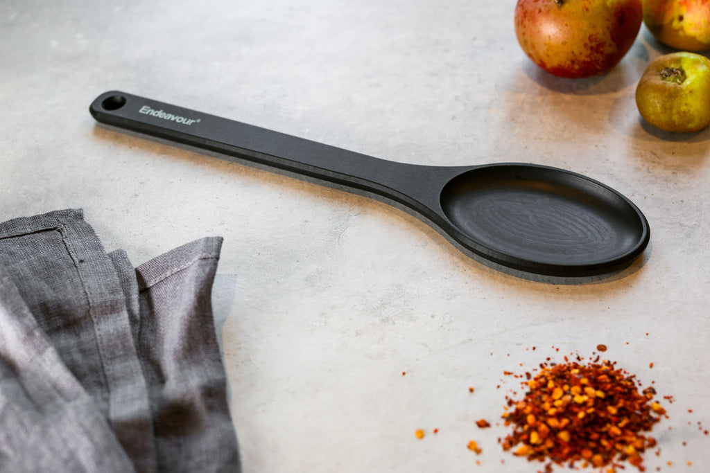 The tool is made from FSC®-certified organic fibers sourced from sustainable forestry. The material is robust, withstands heat up to 170°C, and retains its color after use. The tool comes in Night Black, preventing absorption of food colors.