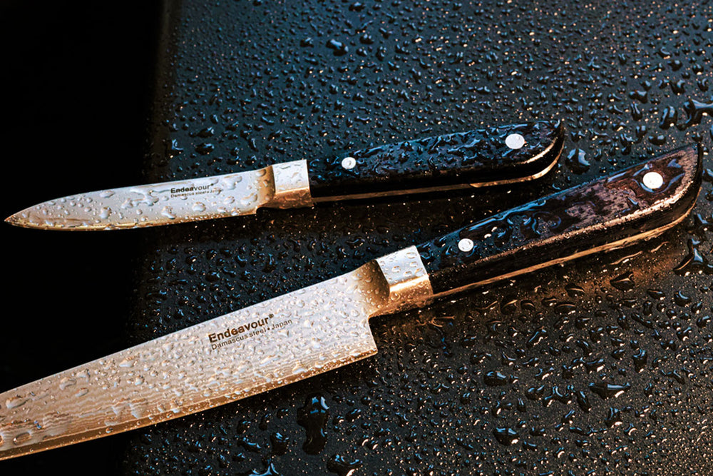 Stål: Discovery Pro-knivene er fremstillet af førsteklasses japansk VG10-stål fra Takefu Special Steel Co. i Echizen, Japan. Dette højtydende stål sikrer enestående styrke, holdbarhed og skarphed. Klingerne er håndslebet, poleret og består af 67 lag damasceret stål. De er hærdet ved over 1000 °C og afkølet til under -180 °C, hvilket giver en hårdhed på 60-61 HRC – knivskarpe, lette og kraftfulde værktøjer.