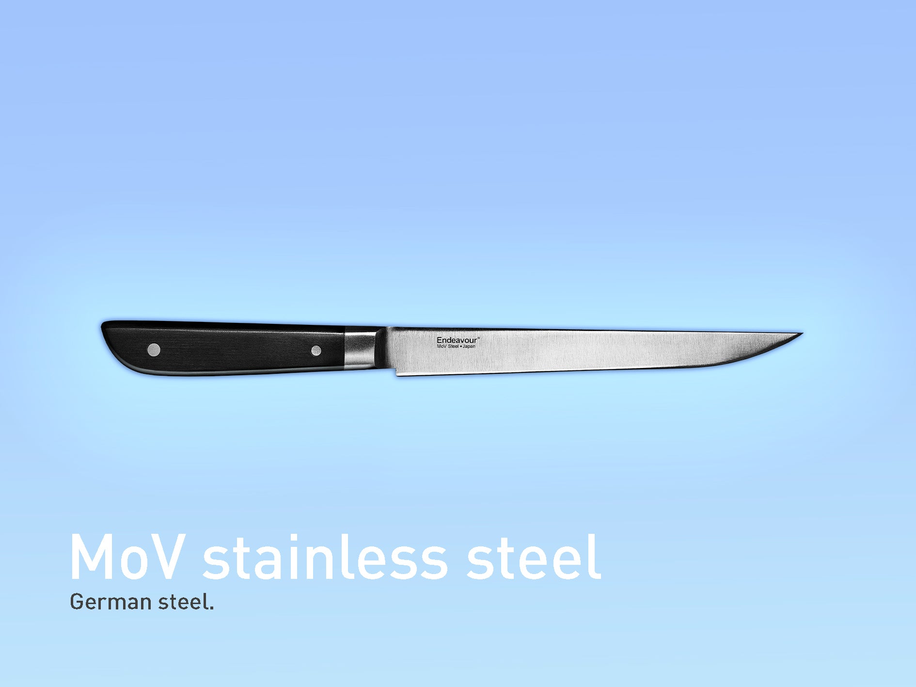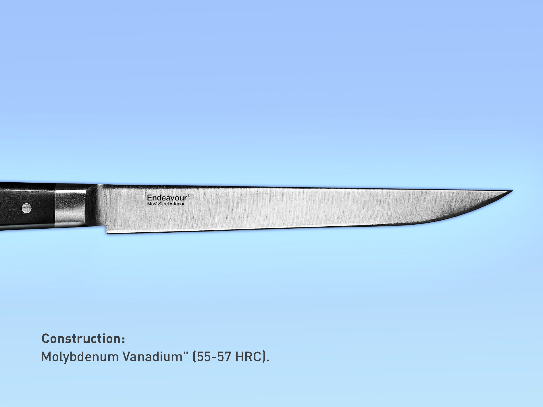 Fremstillet af tysk og japansk MoV rustfrit stål (molybdænvanadium) med en hårdhedsgrad på 55-57 HRC.
