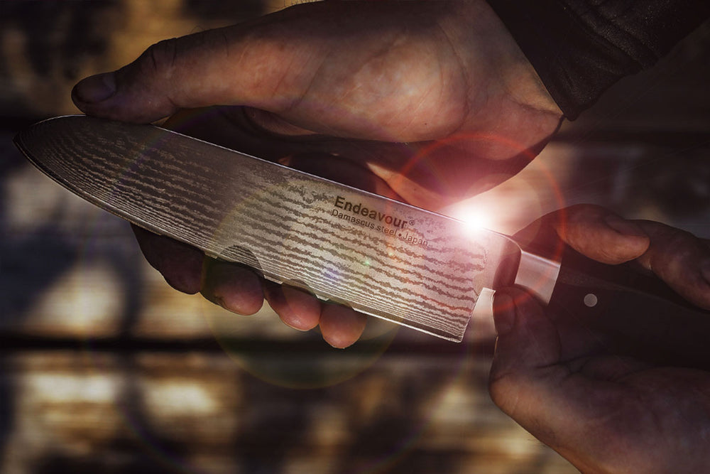 Stål: Discovery Pro-kniven er fremstillet af førsteklasses japansk VG10-stål fra Takefu Special Steel Co. i Echizen, Japan. Dette højtydende stål sikrer enestående styrke, holdbarhed og skarphed. Klingen er håndslebet og poleret og har 67 lag Damaskus-mønstret stål. Den er hærdet ved over 1000°C og afkølet til under -180°C, hvilket giver en hårdhed på 60-61 HRC – et knivskarpt, let og kraftfuldt værktøj.