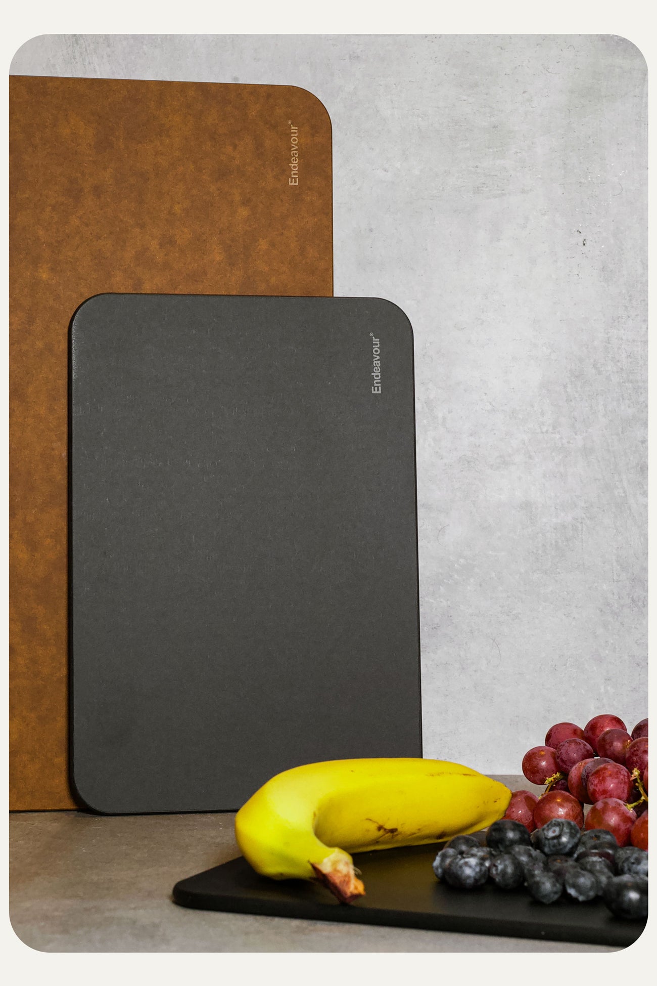 Skærebrættet er lavet af FSC®-certificerede organisk fiber fra bæredygtigt skovbrug. Materialet er robust, skåner dine knive, tåler varme op til 170°C og bevarer farven efter brug. Brættet er gennemfarvet i Night Black, hvilket forhindrer optagelse af farver fra fødevarer, typisk for plastik og træbrætter.