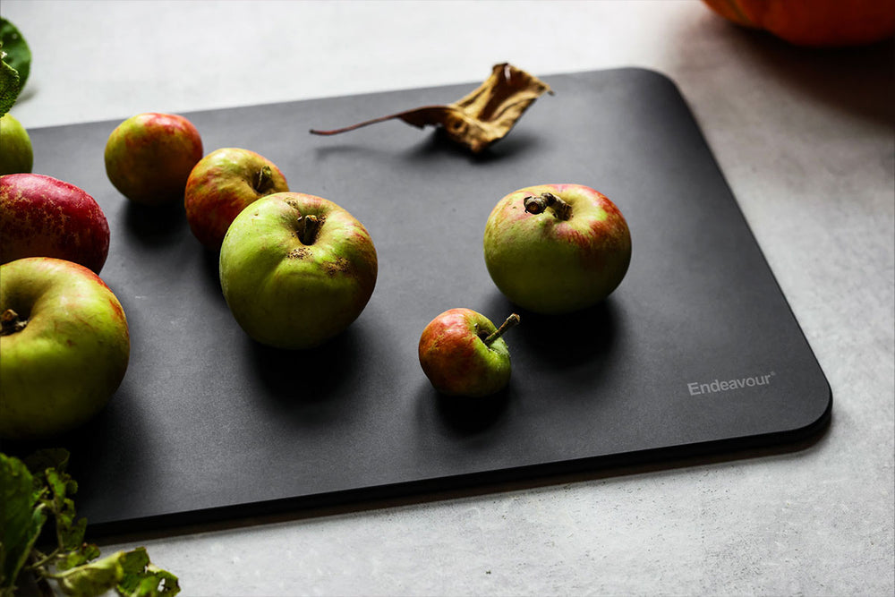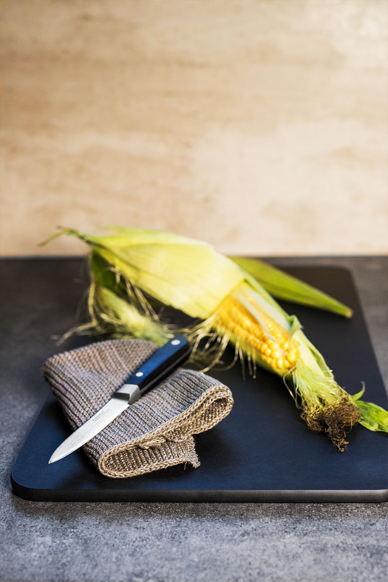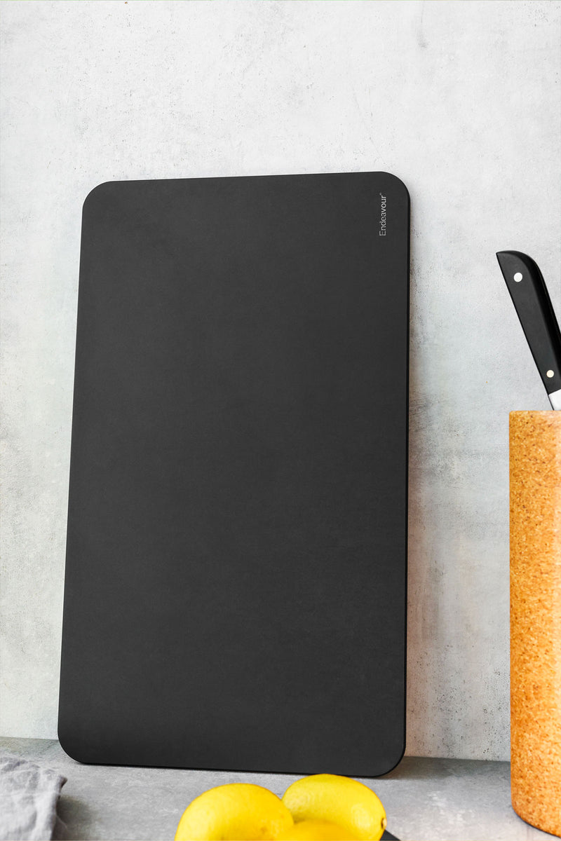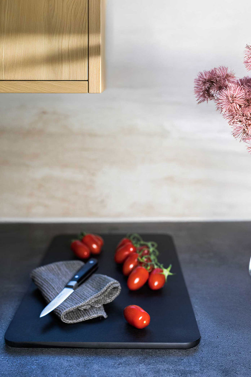 Skærebrættet er lavet af FSC®-certificerede organisk fiber fra bæredygtigt skovbrug. Materialet er robust, skåner dine knive, tåler varme op til 170°C og bevarer farven efter brug. Brættet er gennemfarvet i Night Black, hvilket forhindrer optagelse af farver fra fødevarer, typisk for plastik og træbrætter.
